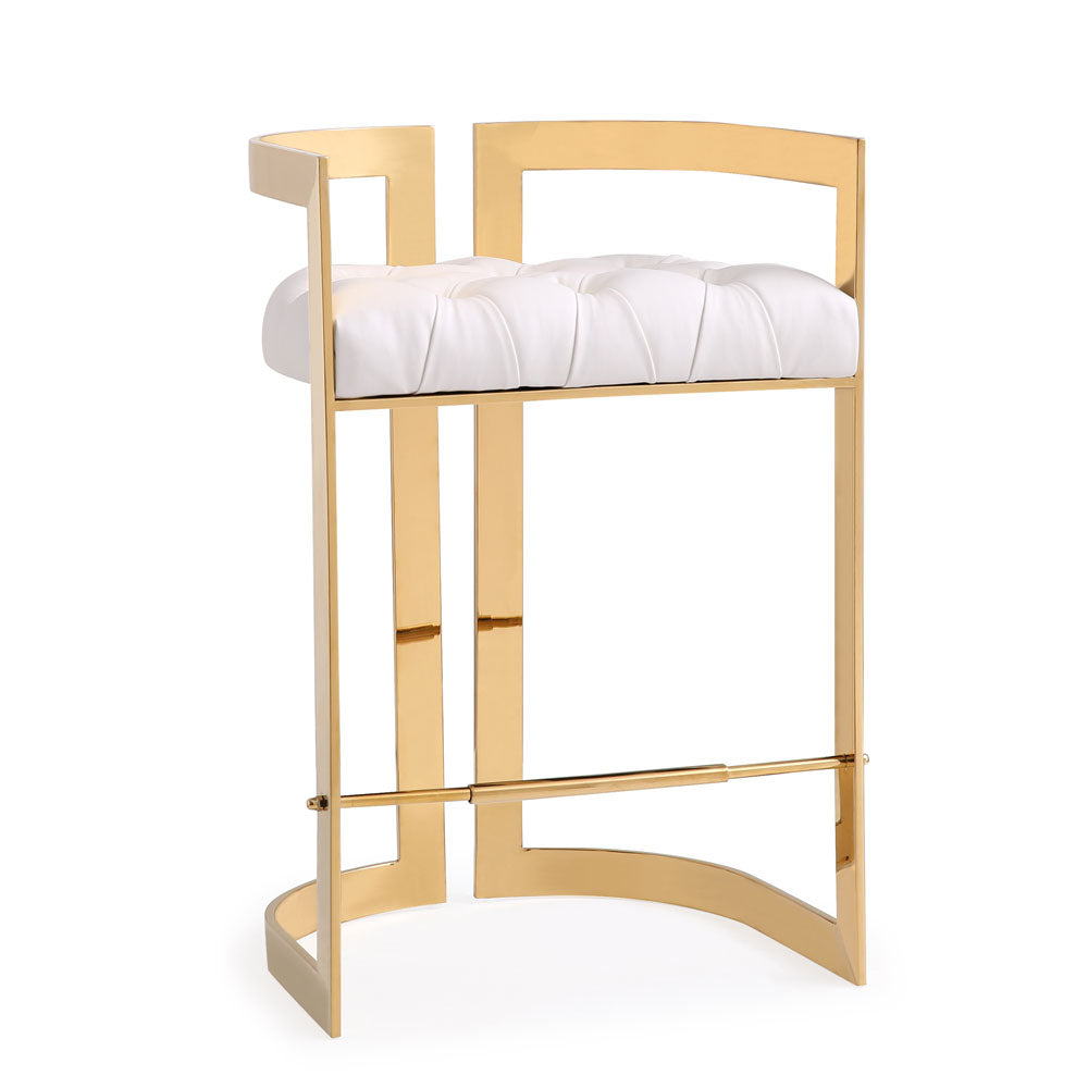 Maison Majestic White Leatherette Counter Stool with Luxe Gold Frame