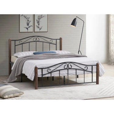 Maison Queen Bed Frame with Mattress Support – Black Steel & Walnut