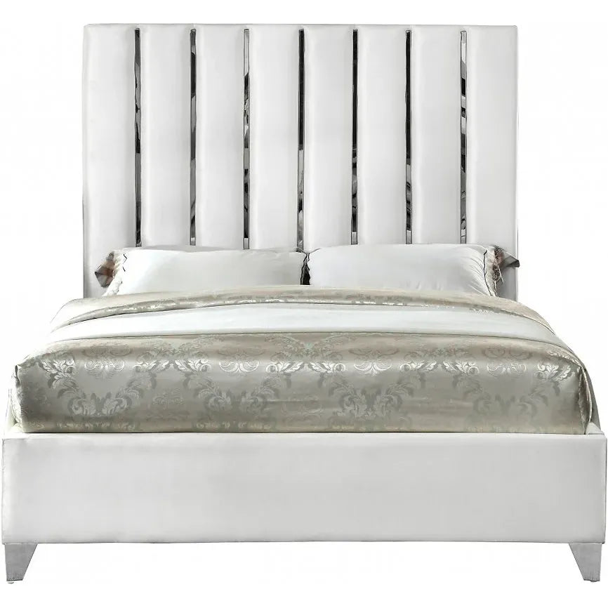 Maison Queen Bed with Velvet Upholstery – Chrome Channel Design
