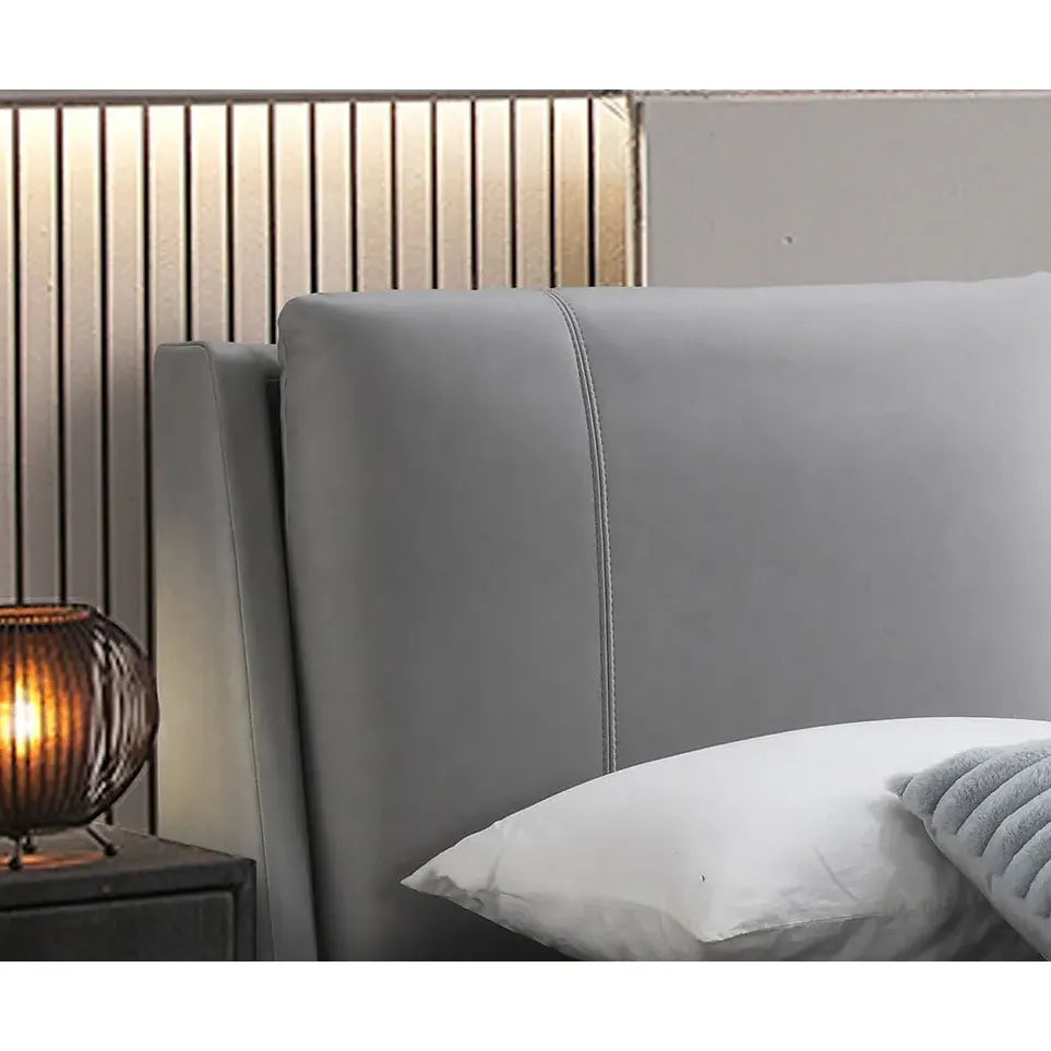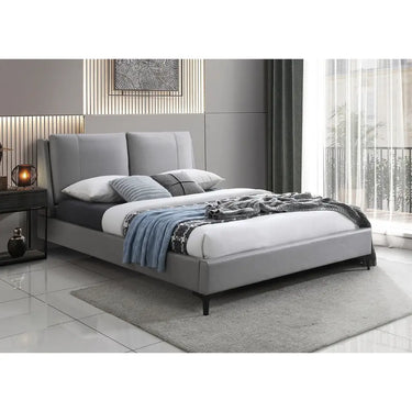 Maison Queen Platform Bed with Pillow Headboard & Grey PU Upholstery