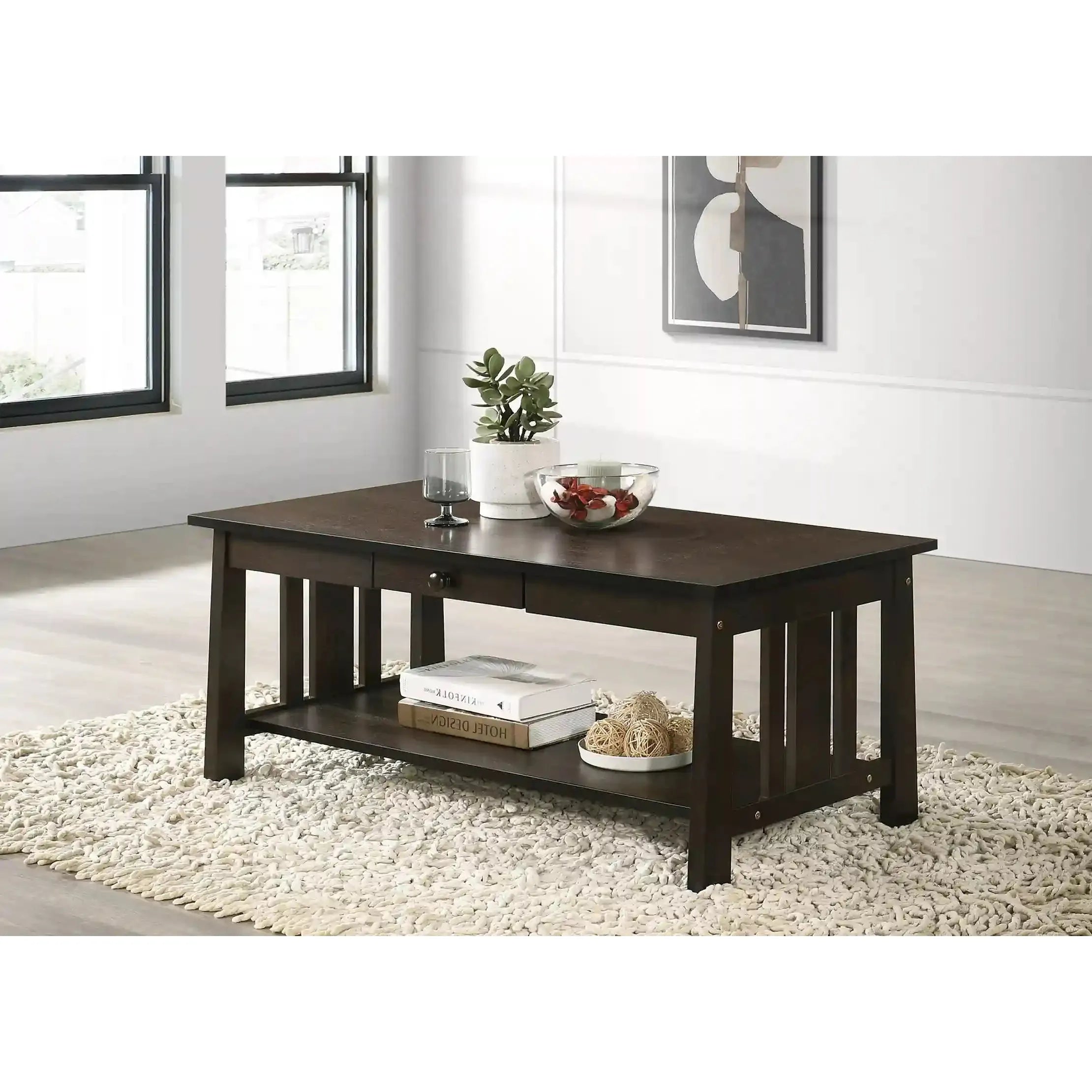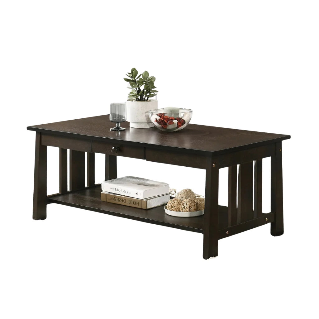 Maison Sleek Espresso Coffee Table with Pull-Out Drawer & Storage Shelf