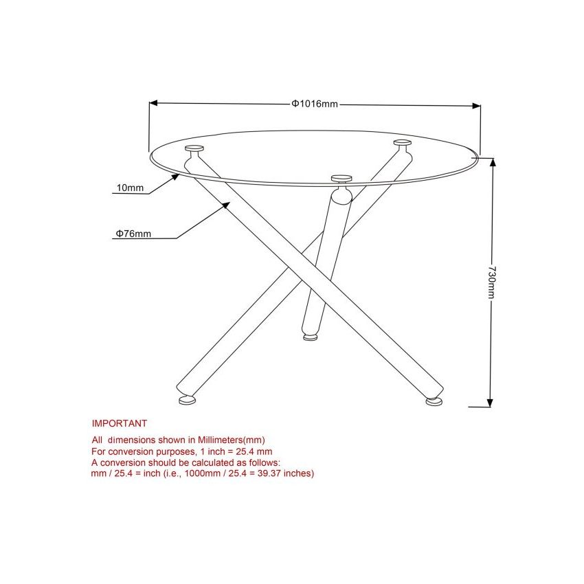 • 10mm clear, tempered glass top with brushed stainless steel accent