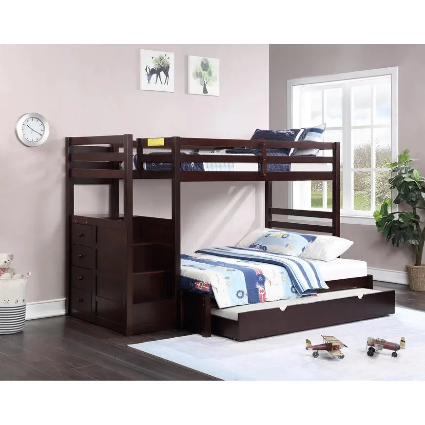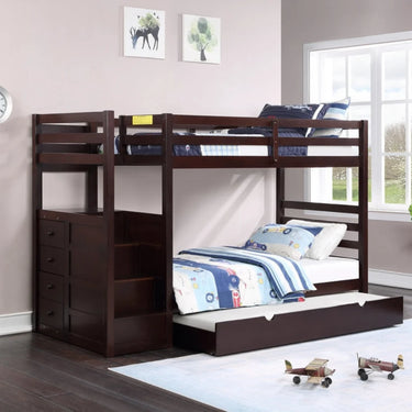 Solid Wood Single Over Single Bunk Bed with Stairs – Espresso