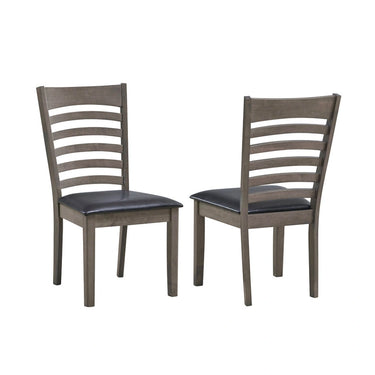 2-Piece Antique Grey Wooden Dining Chairs With Ladder Back Design