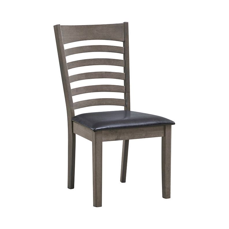 Home 2-Piece Antique Grey Wooden Dining Chairs With Ladder Back Design