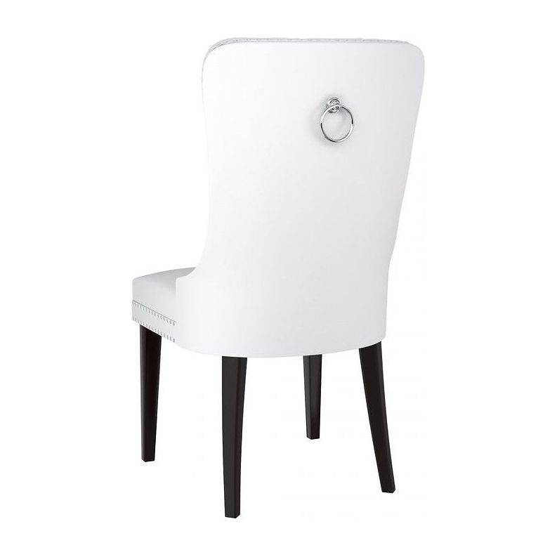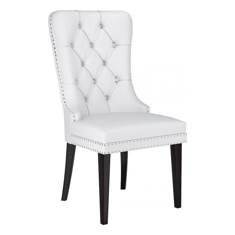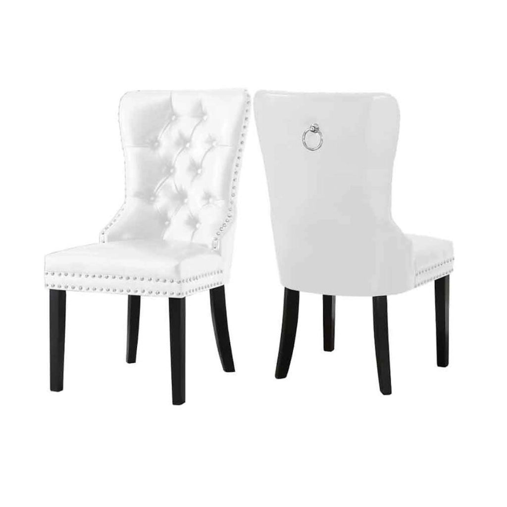 2-Piece Button-Tufted Dining Chairs – White PU with Nailhead Trim
