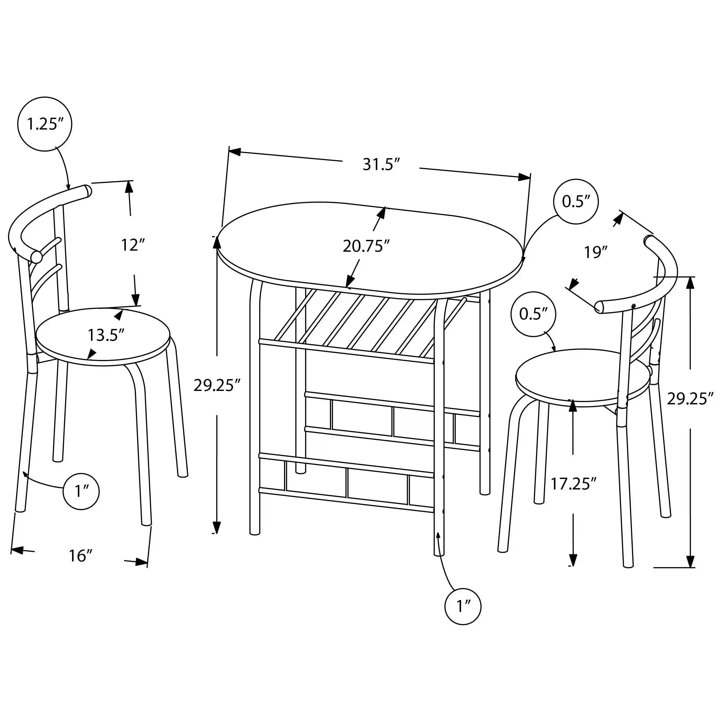 3-piece small dining set: includes 1 dining table and 2 chairs