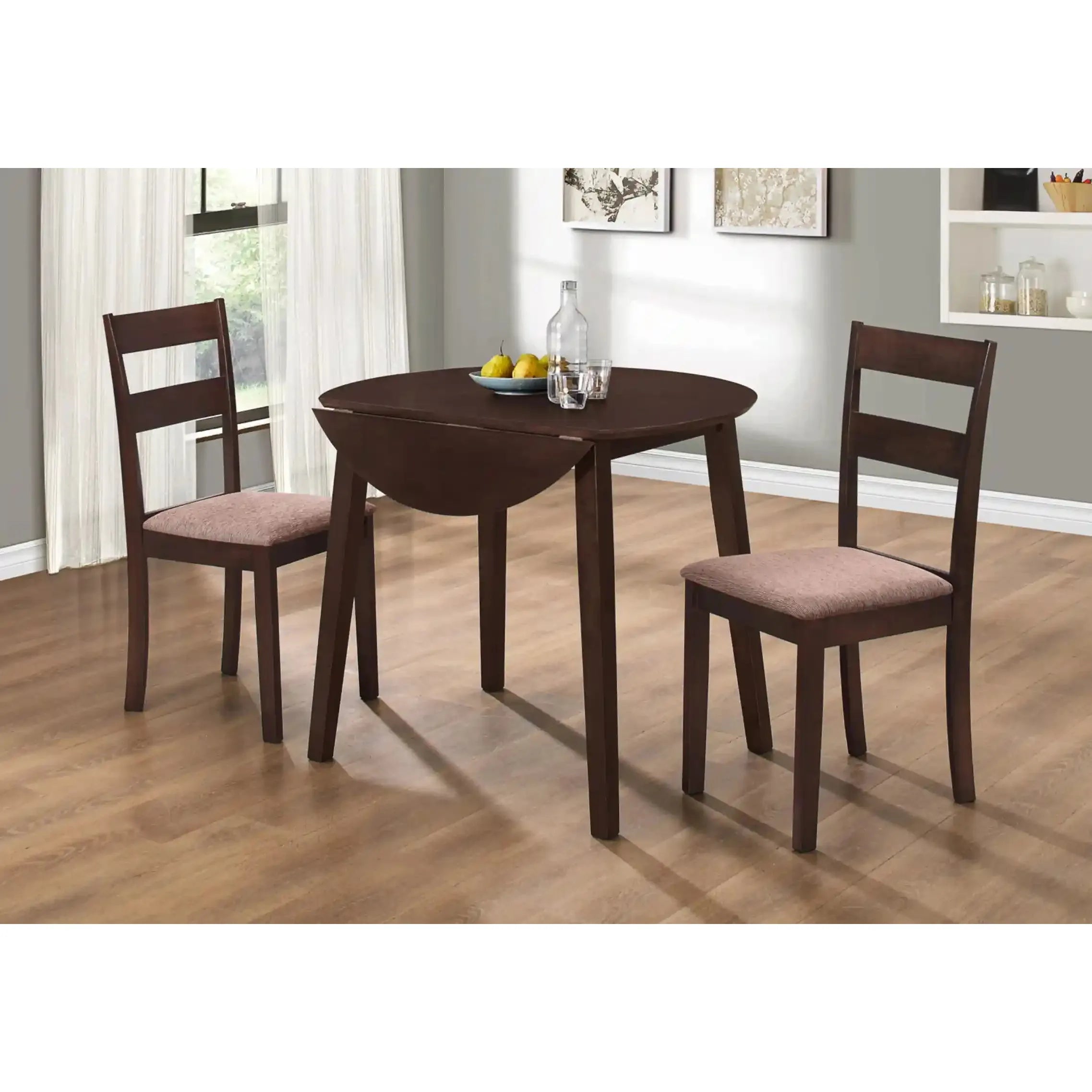 3-Piece Drop Leaf Dining Set with Fabric Cushioned Chairs