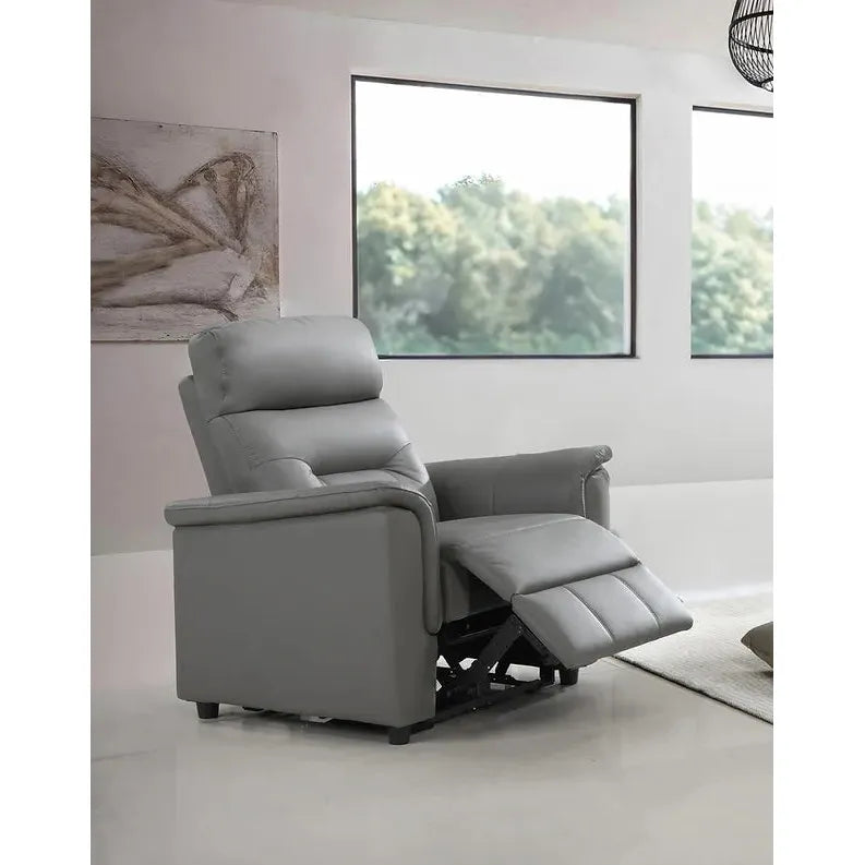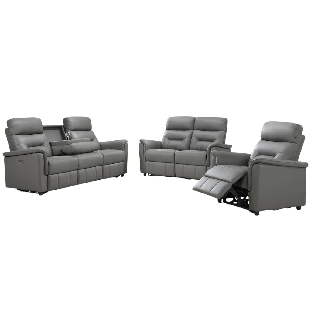 3pc Power Recliner Sofa Set – Light Grey Leather with USB Ports