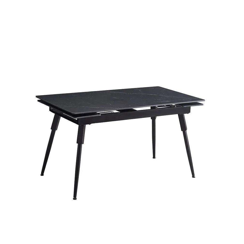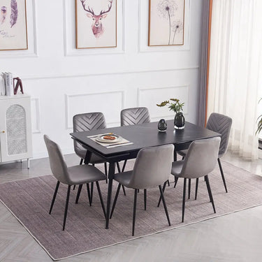 7 Piece Dining Set – Black Marble Extension Table + 6 Chairs