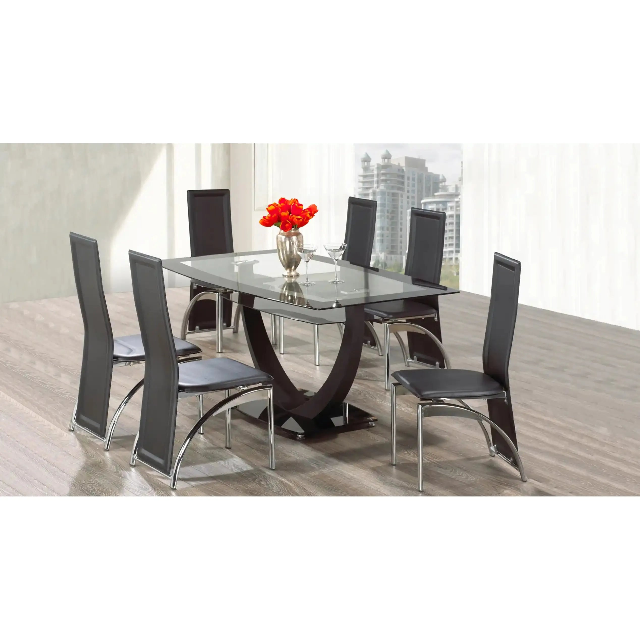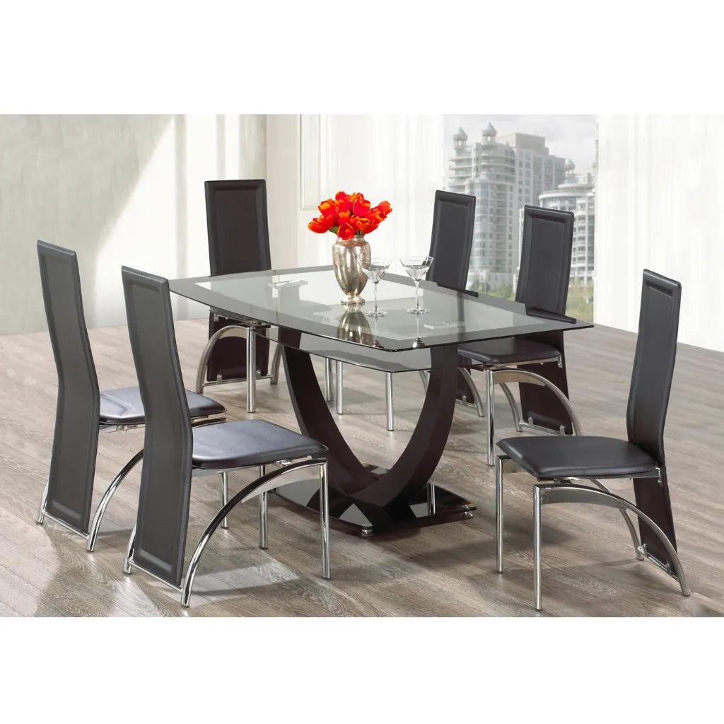 Home 7-Piece Glass Dining Set with Black Metal Base & Leather Chairs