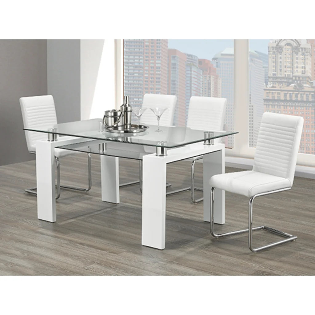 Ready to refresh your dining space? This glass dining set with chrome legs brings a fresh, modern vibe that's both elegant and practical. The 10mm tempered glass tabletop is not only sleek but built to last. Its glossy finish—available in white or black—adds a brilliant shine that brightens any room. Supporting the table are sturdy chrome accent legs, giving it that polished, contemporary look. They’re strong, stylish, and easy to clean.