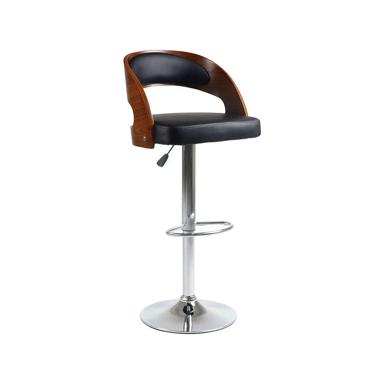 Bar stool with black seat and wooden backrest