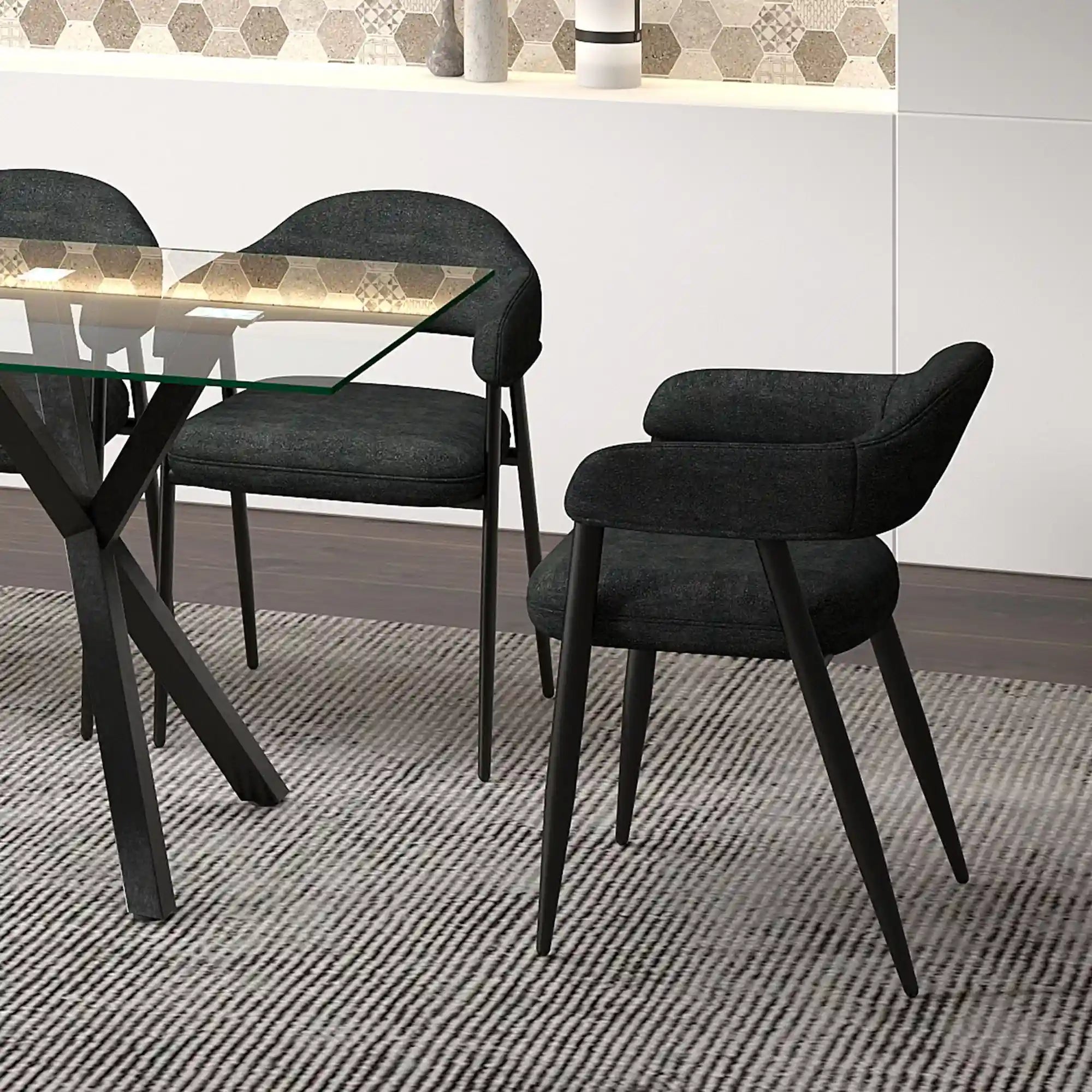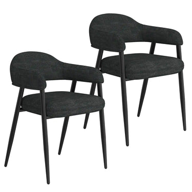 Bring warmth, texture, and a touch of yesterday's appeal to your dining space with the Archer Modern Fabric Dining Chairs – Set of 2. Combining mid-century charm with a modern form, these chairs are upholstered in a rich, tactile charcoal fabric with a subtle contrast of button detail to the chair's face.Whether you’re entertaining at a formal gathering or simply having dinner, the medium-firm foam cushioning will maintain its comfort level over time. Matte black metal legs to contrast and complement the upholstery, this contemporary dining chair is a great addition to any dining room, office, waiting area, or living area.It is attractive for dining rooms and flexible to accommodate another living place - dining room, bedroom, entry, or home office. Even add it to a commercial space!