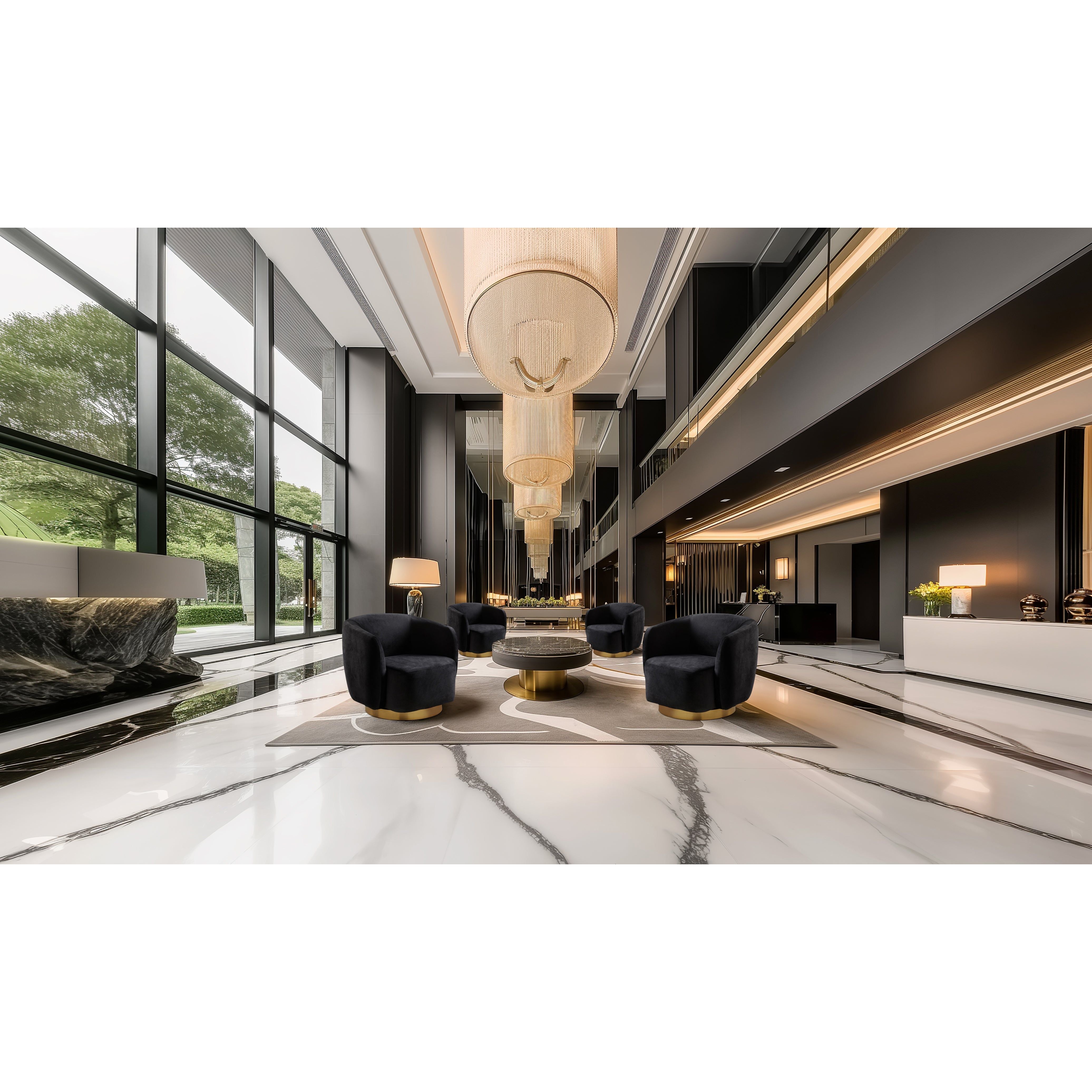 Make a bold statement with the Aspen black velvet accent chair, where sleek design meets sumptuous texture. Upholstered in luxurious jet-black velvet and supported by a sculptural matte gold steel base. This black velvet accent chair will turn heads in any area. Perfect for sleek living rooms, lounges, or upmarket offices, it is made to impress.
