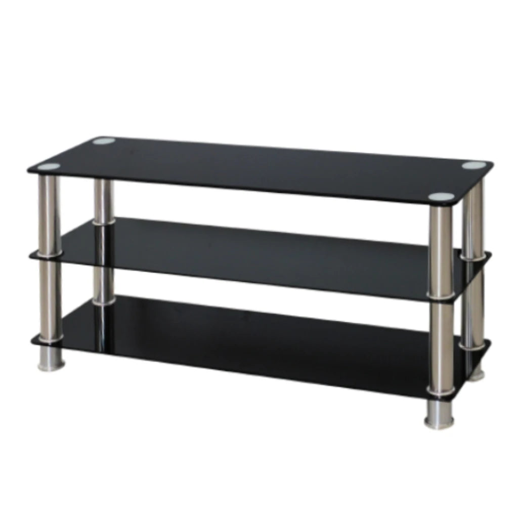 Black Glass TV Stand With 3 Shelves