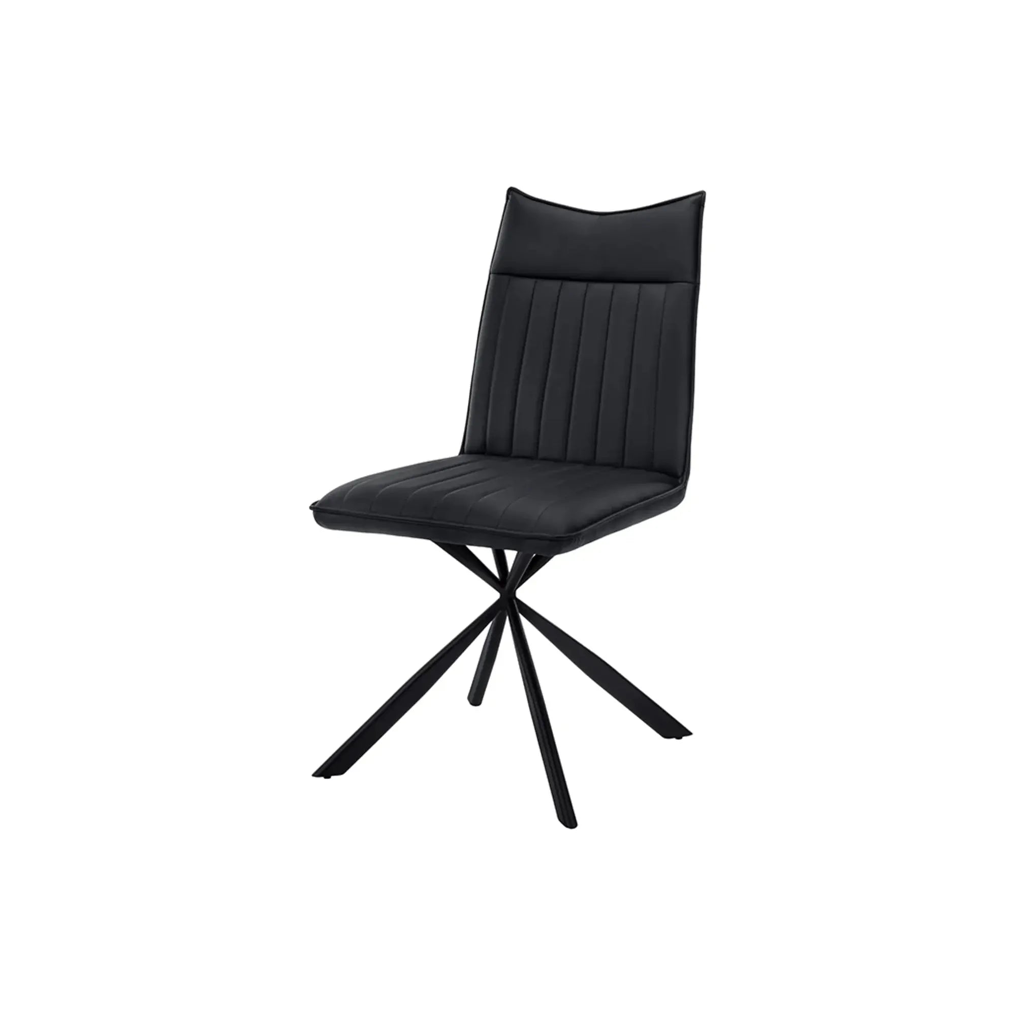 Take your dining experience to the next level with this set of 2 black leather-look dining chairs designed to bring modern elegance and lasting comfort to your space. The Starburst Black Metal Legs add an extra style to your dining room. The cushioned deep seat and medium-high padded backrest with vertical channel ensure comfortable seating. These Starburst Black Metal Legs chairs are Perfect for contemporary dining rooms, and kitchen tables, or you can also use these as stylish accent chairs in any living space. Minor assembly is required with all hardware and illustrated instructions included.