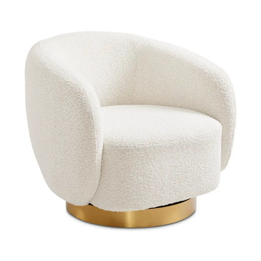 Boucle Fabric Accent Chair – Ivory Upholstery & Customizable Gold Base
