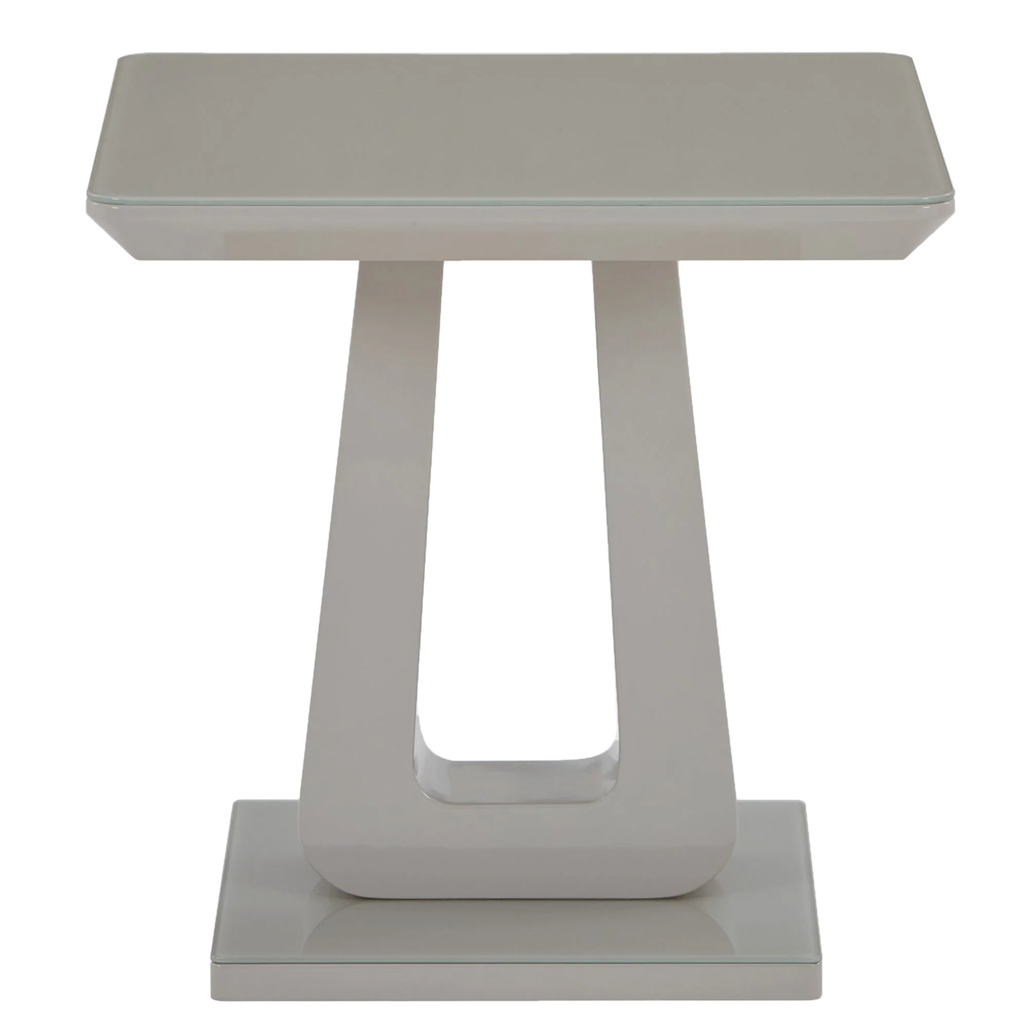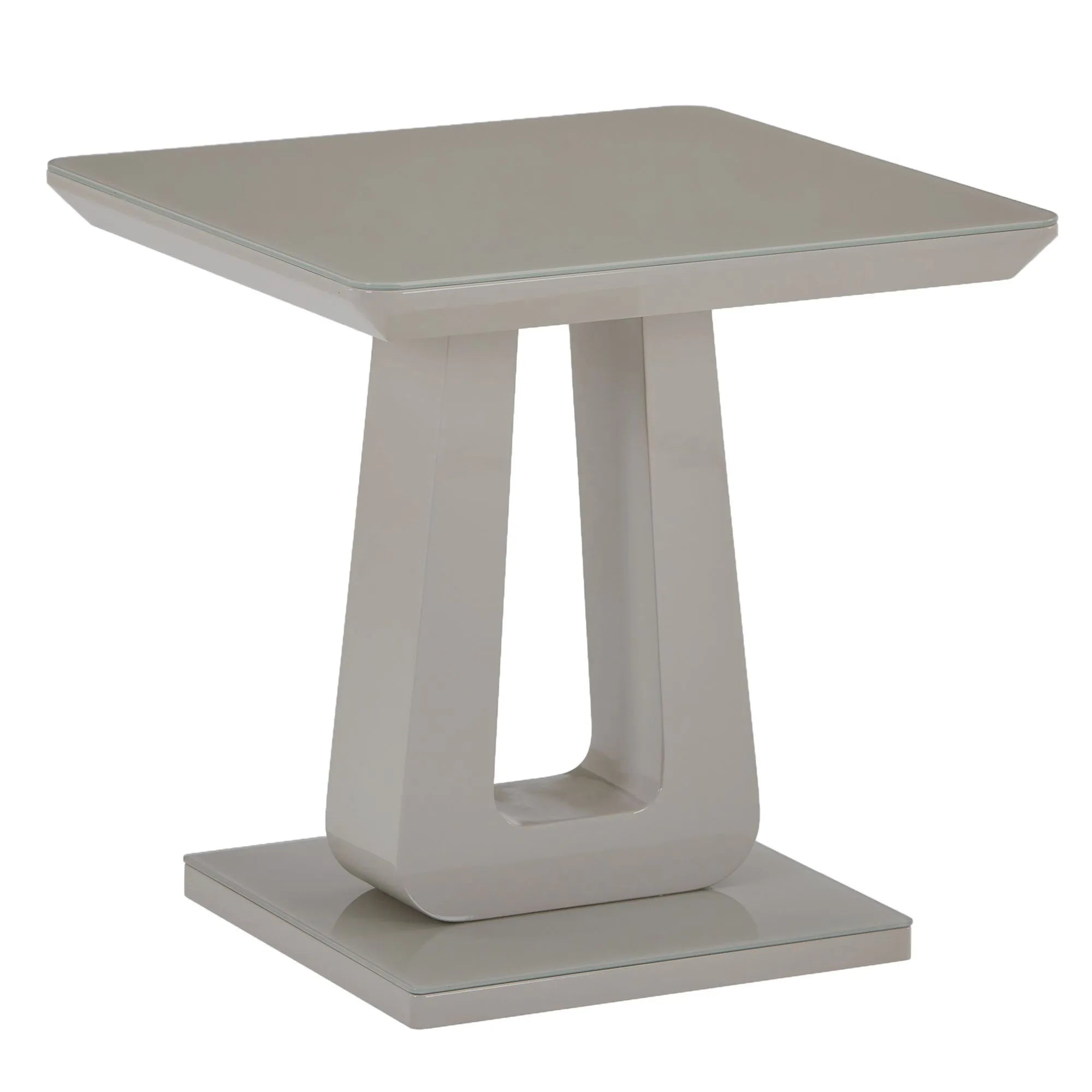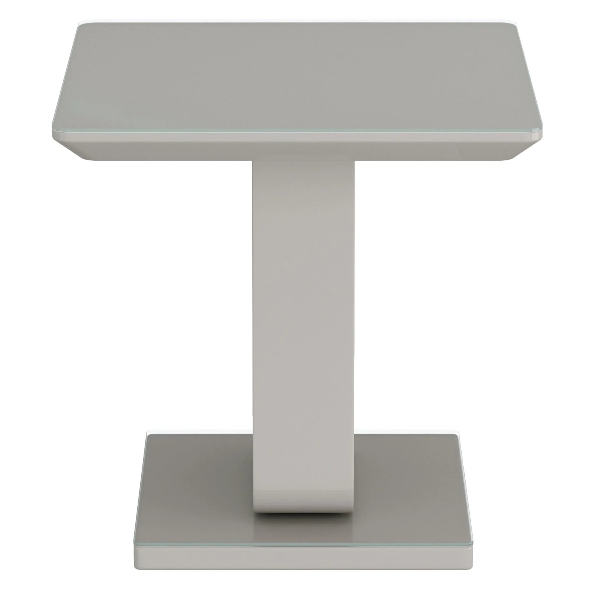 Corvus Modern Glass Side Table in Warm Grey with Pedestal Base