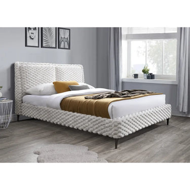 • Upholstered in plush cream fabric with 3D cloud-like texture