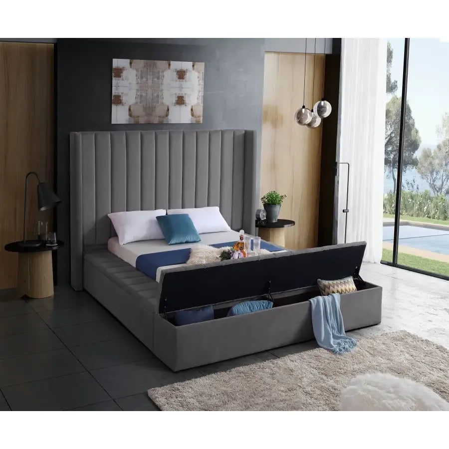 Your bedroom deserves more than just a place to sleep. It deserves a statement piece. This grey velvet King bed with storage brings elegance, comfort, and smart design together in one.