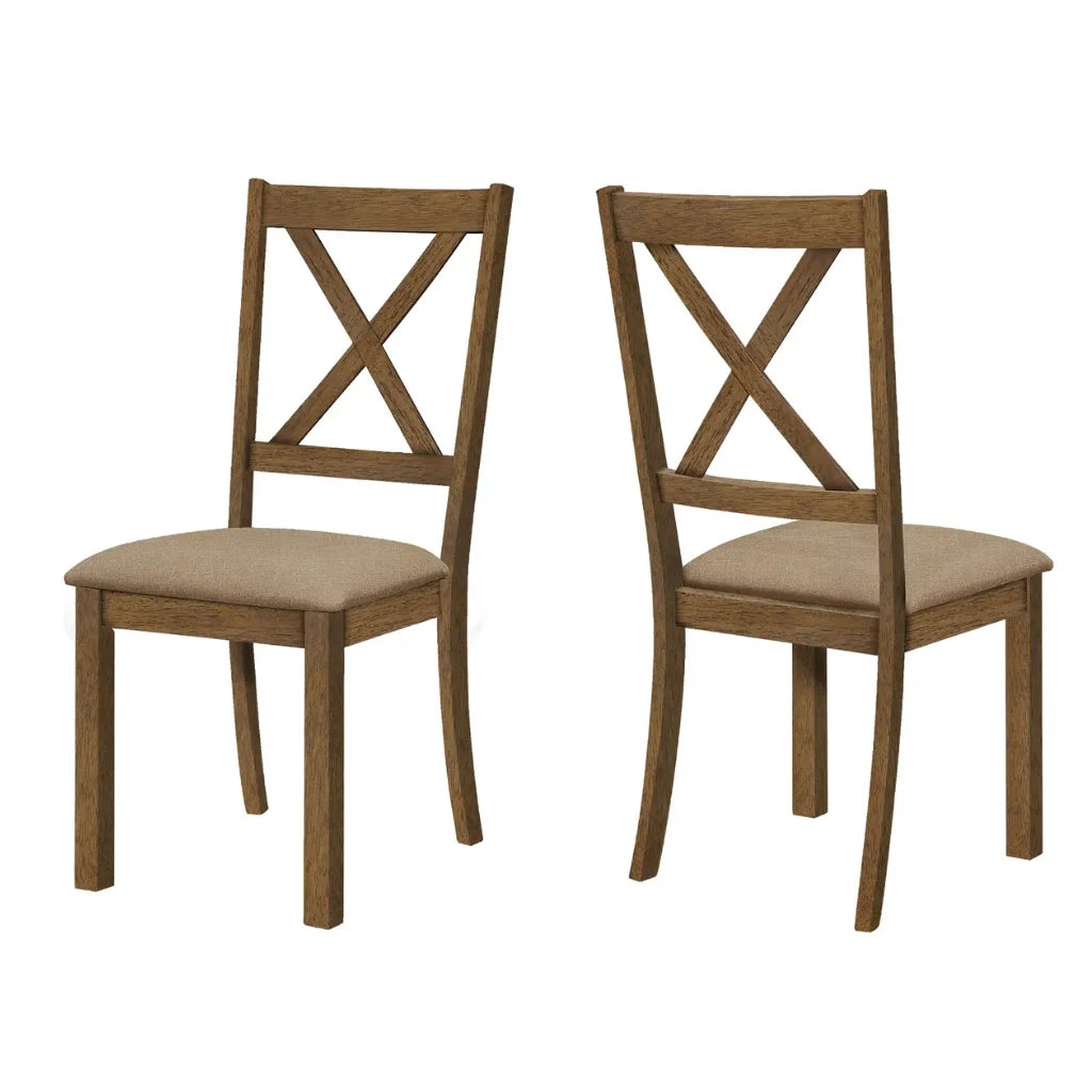 Home Cross Back Dining Chairs – Brown Fabric, Walnut Finish -Set of 2