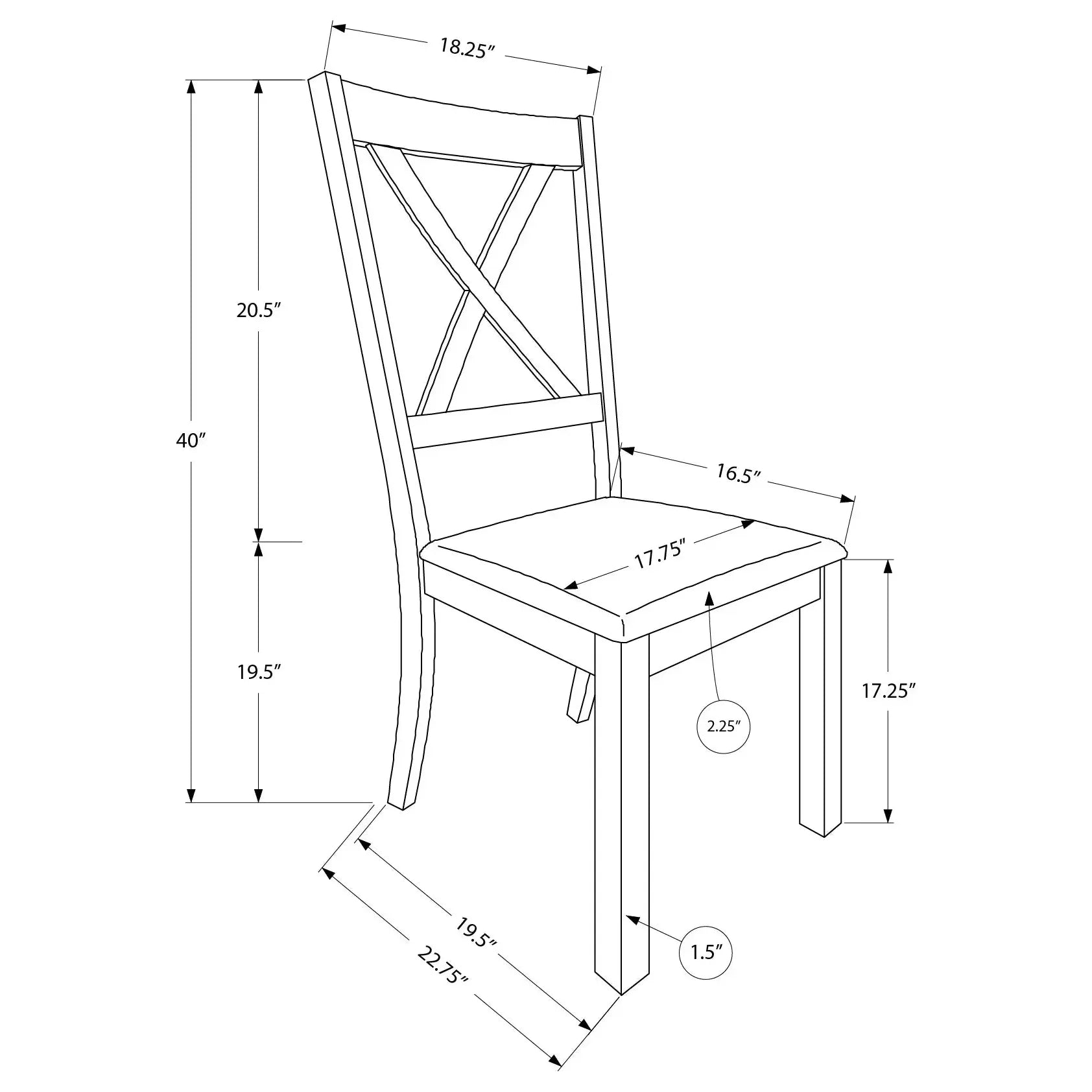 • Seat height: 17.25"