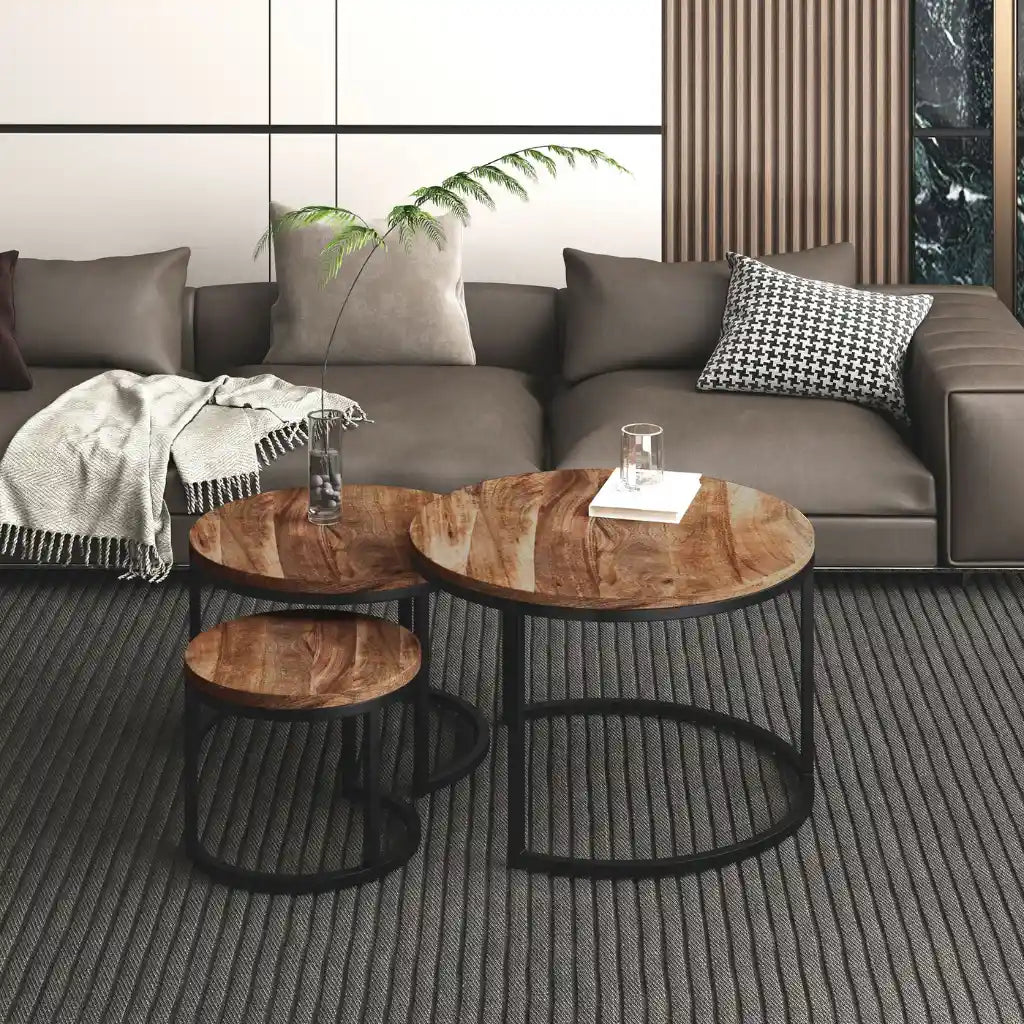Darsh 3pc Nesting Coffee Table Set With Rustic Mango Wood Tops