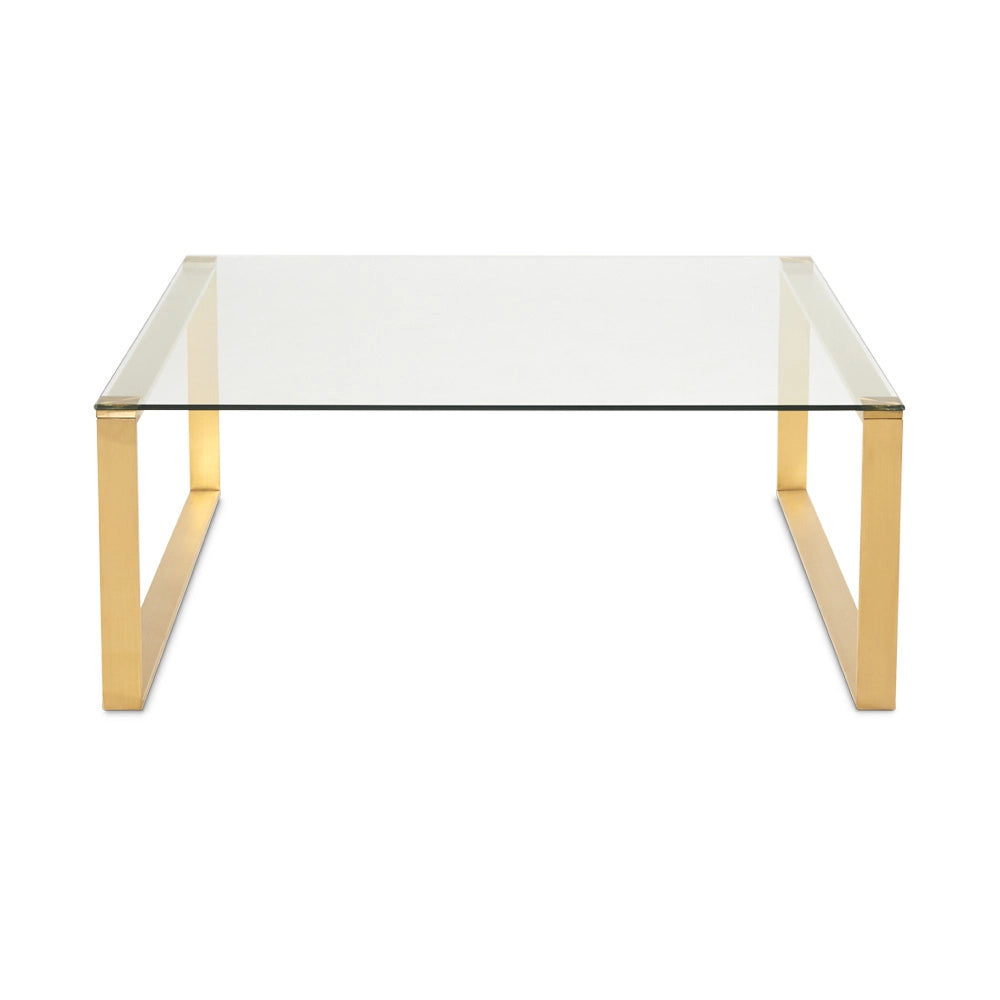 David Gold Coffee Table – Square Glass Top with Brushed Gold Frame