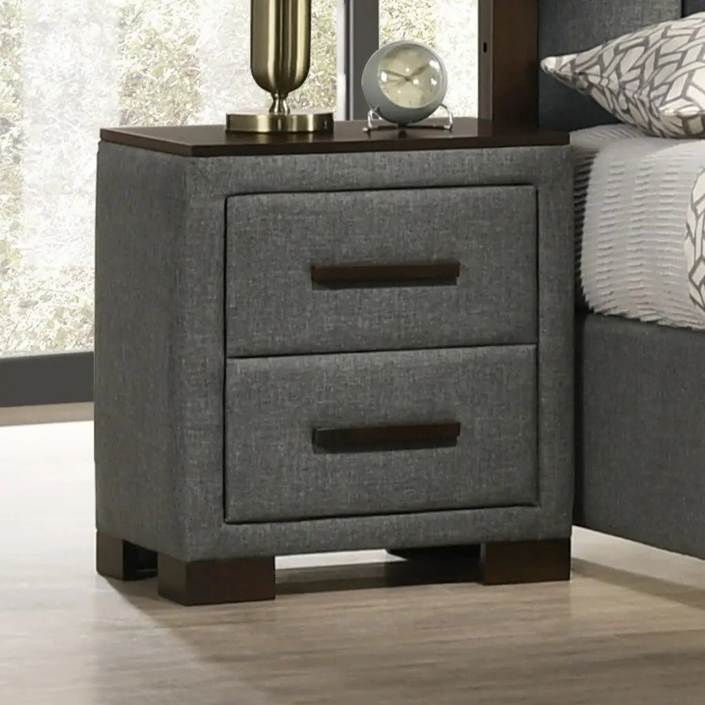 Dylan Nightstand in Dark Grey Fabric with Brown Wood Top