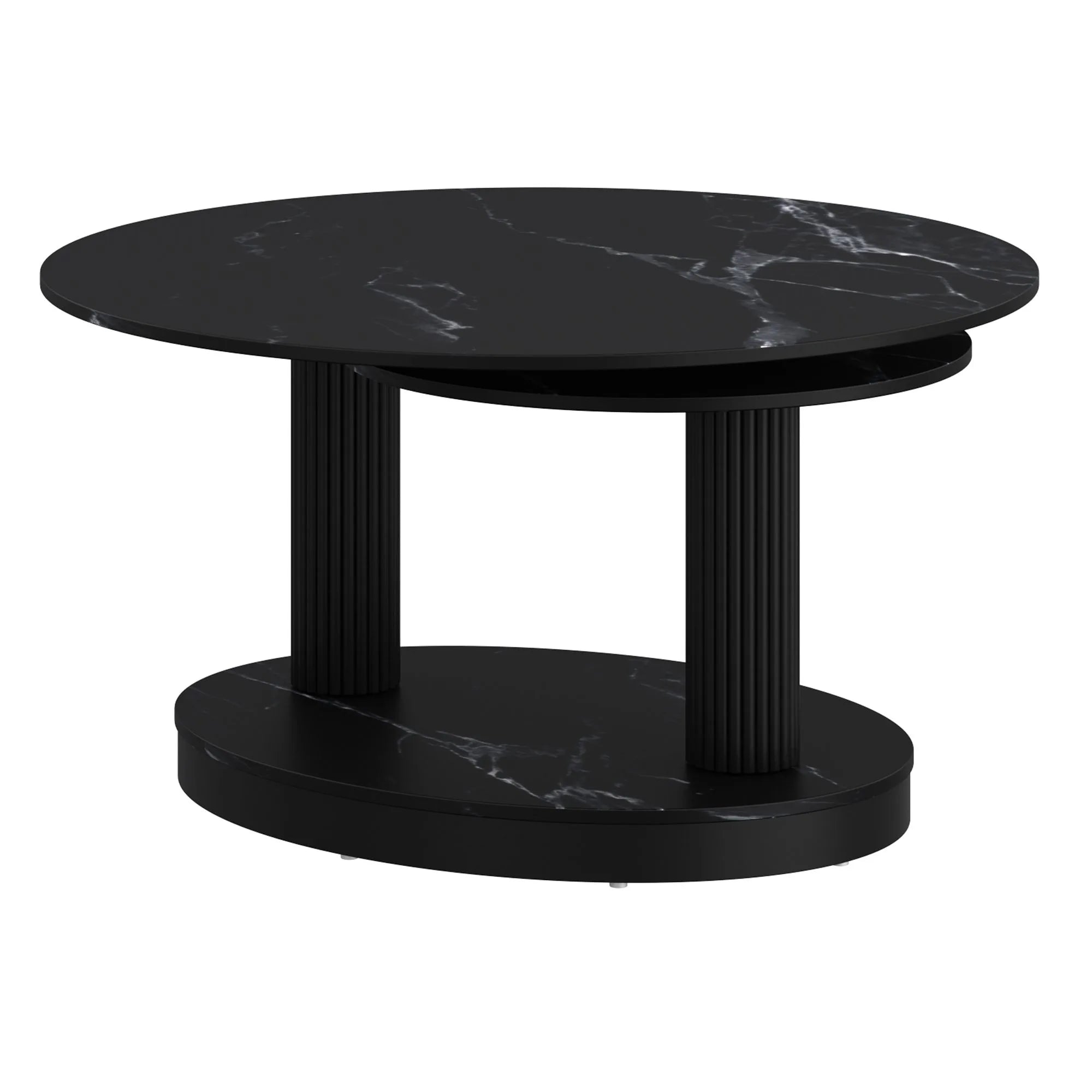 Stylish and functional, transform your living room with a modern masterpiece coffee table designed for versatility. The Elara extendable coffee table adds a designer touch to your living room. It starts off as an exquisite round coffee table boasting a sintered stone top that resembles marble yet outlasts it in durability. The stone surfaces are spill-proof, heat-proof, and scratch-resistant, ensuring the beauty of the table for years to come. Elara’s magic lies in its clever extendable aspect, which allows a smooth one-handed rotation to expand the table from a 31.5” diameter to an astonishing 53.5” wide. This provides ample space to entertain guests, family gatherings, or even decor displays without hindering comfort. Transform your lifestyle with unmatched elegance today by bringing home this delightful addition!