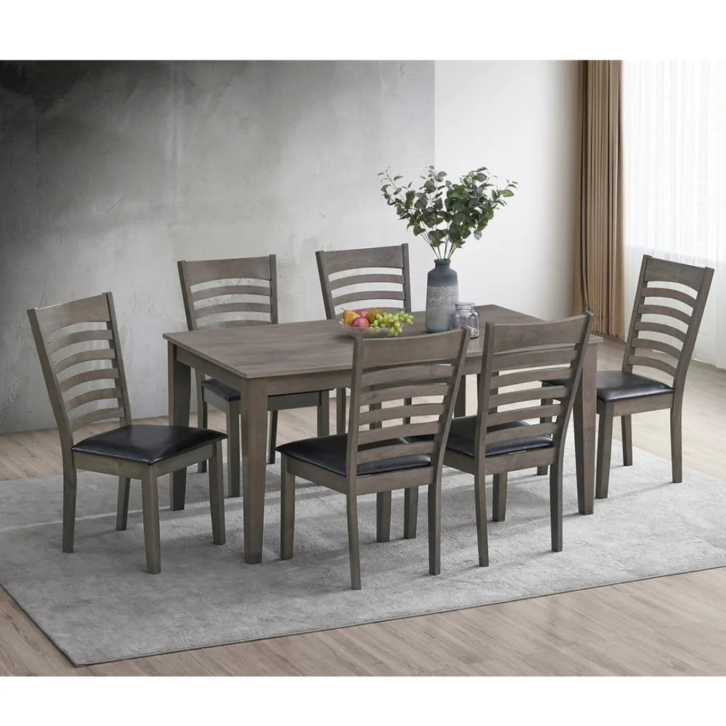 Elegant Antique Grey 7‑Piece Dining Set with Ladder‑Back Chairs