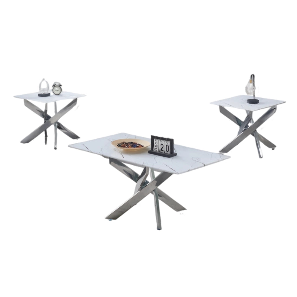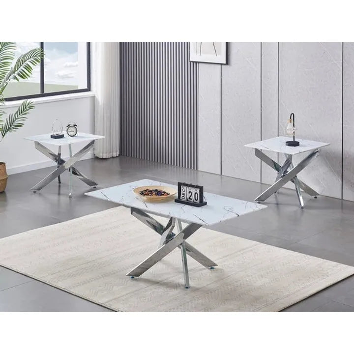 Home Elegant Marble & Steel 3‑Piece Coffee Table Set