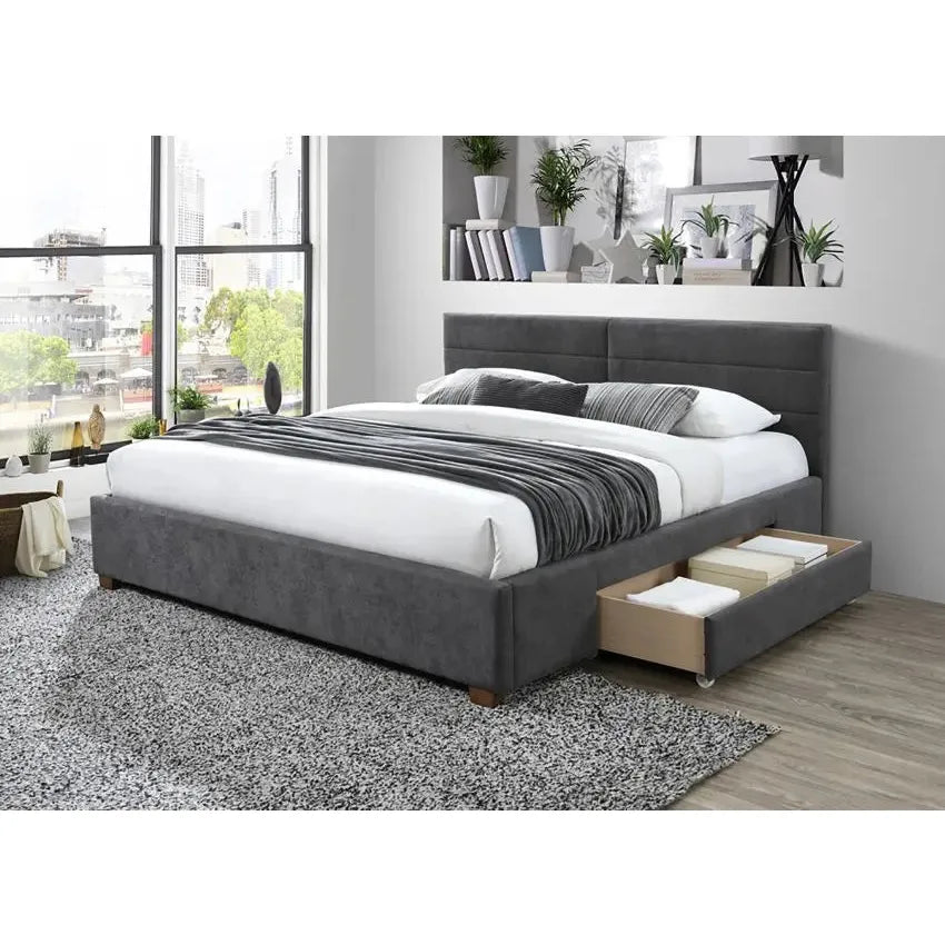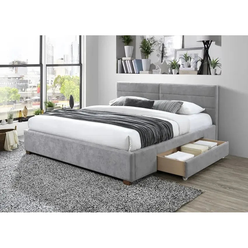 Beautifully designed and built to be both elegant and functional, this Grey King Storage Bed, featuring solid rubberwood legs with an oak finish, brings warmth to its grey polyester upholstery.