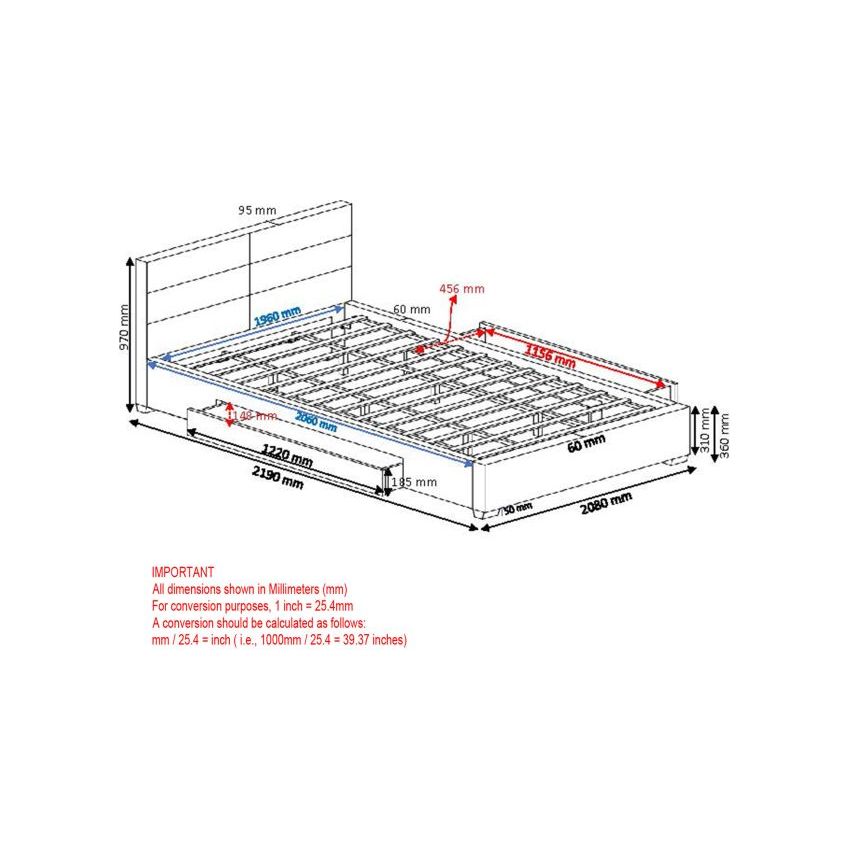 Say goodbye to that old box spring—this Priage bed frame is the solution that supports any mattress without the need for a traditional box spring. The platform bed frame features 13-14 inches of horizontal slats with an enclosure and center support legs. Two deep under-bed drawers on castors provide practical storage for socks, T-shirts , or other seasonal clothes, linens, or personal items.