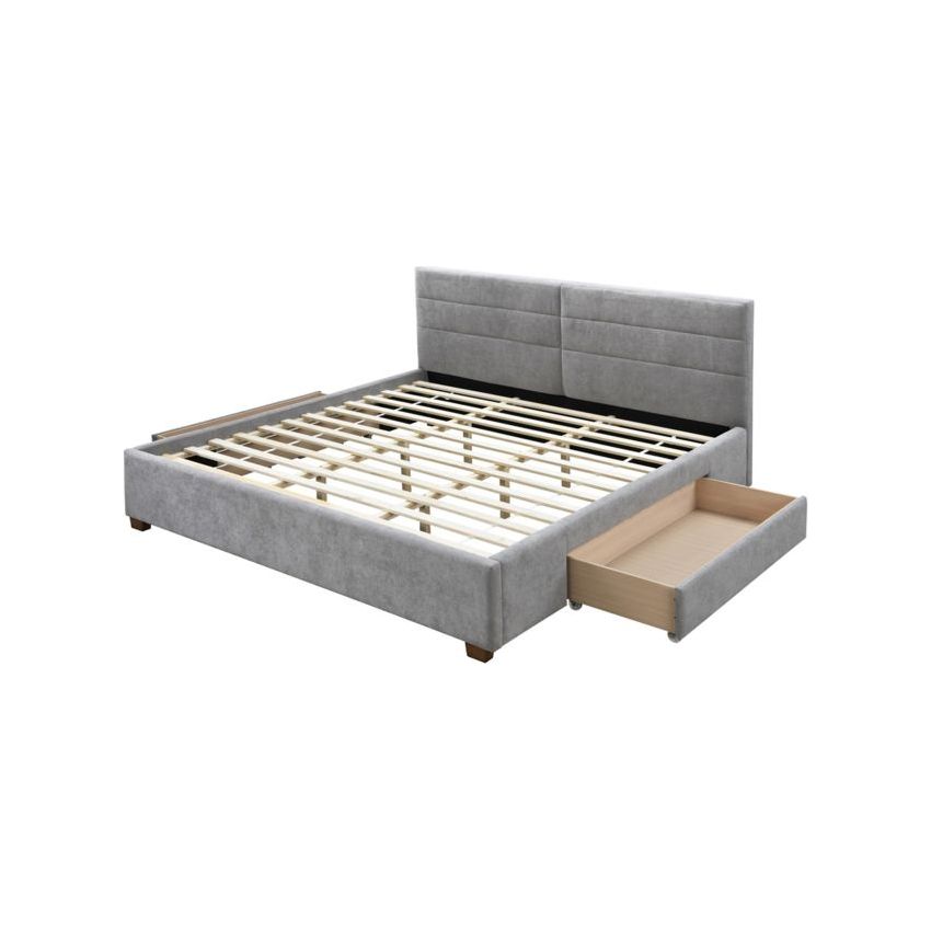 Find style and smarts all in one with the Emilio 78 King Platform Bed. This piece is upholstered in calming light grey fabric, and its simple yet bold design is perfect for the contemporary interior.