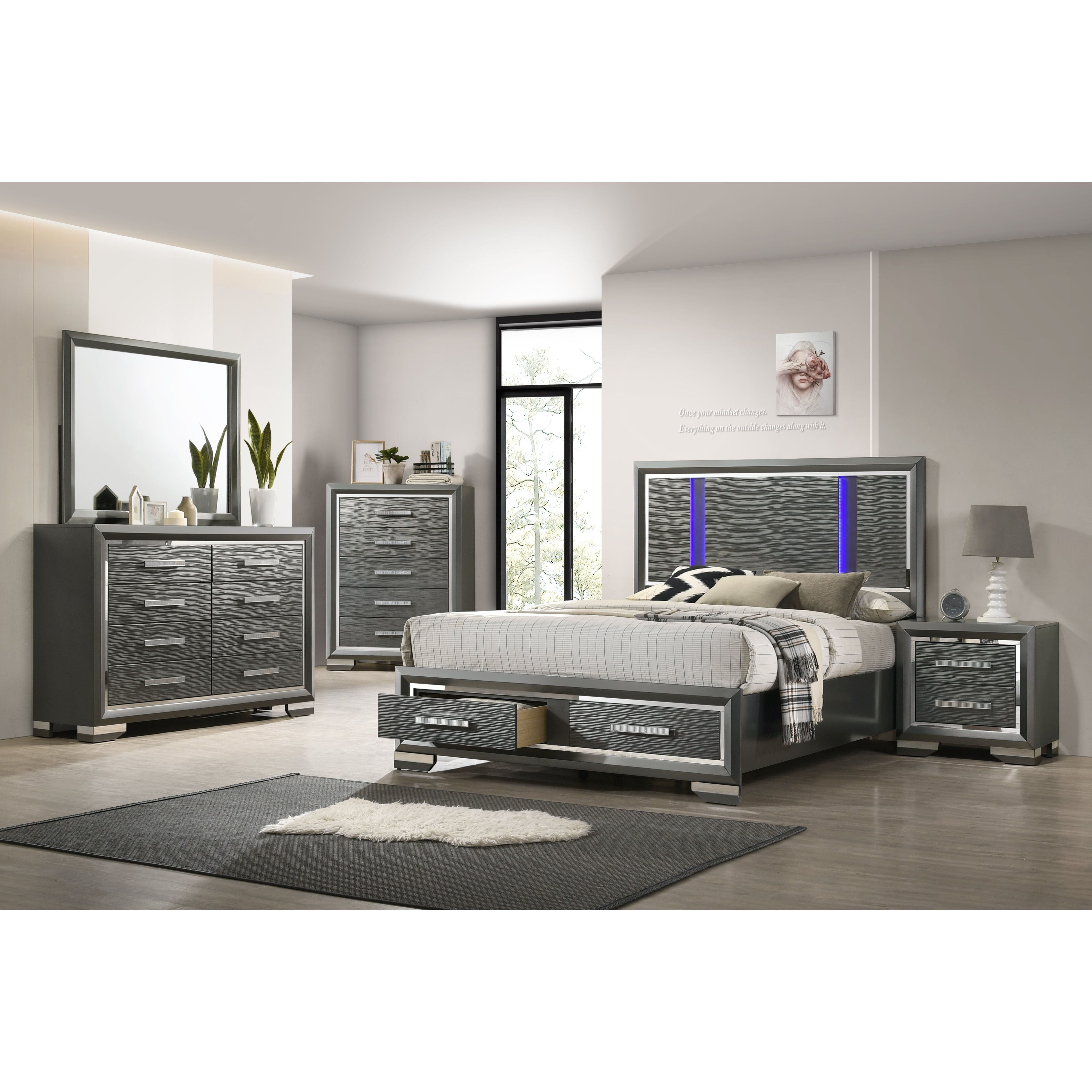 Redéfinissez votre chambre à coucher avec le Set de chambres Juliette, une collection qui offre à la fois une esthétique moderne et une fonctionnalité pratique. Cet ensemble comprend un magnifique lit avec des accents LED sur la tête de lit et un repose-pieds de rangement, ainsi qu’une commode, un miroir, une table de chevet et une commode, le tout dans une finition grise chic. L’ensemble de chambre à coucher Juliette crée une atmosphère cohésive et élégante, ce qui facilite la réalisation de la chambre élégante et organisée de vos rêves.