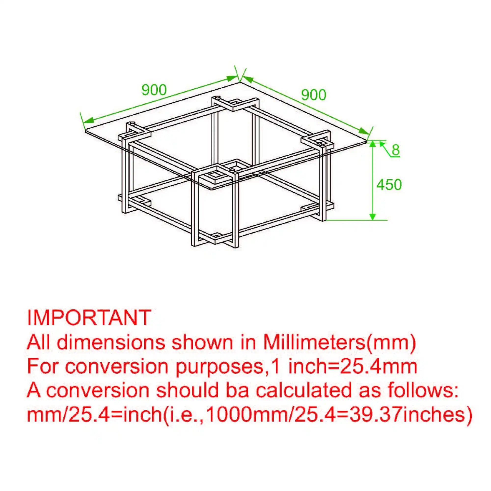 - Clear 8mm tempered glass top for durability and elegance