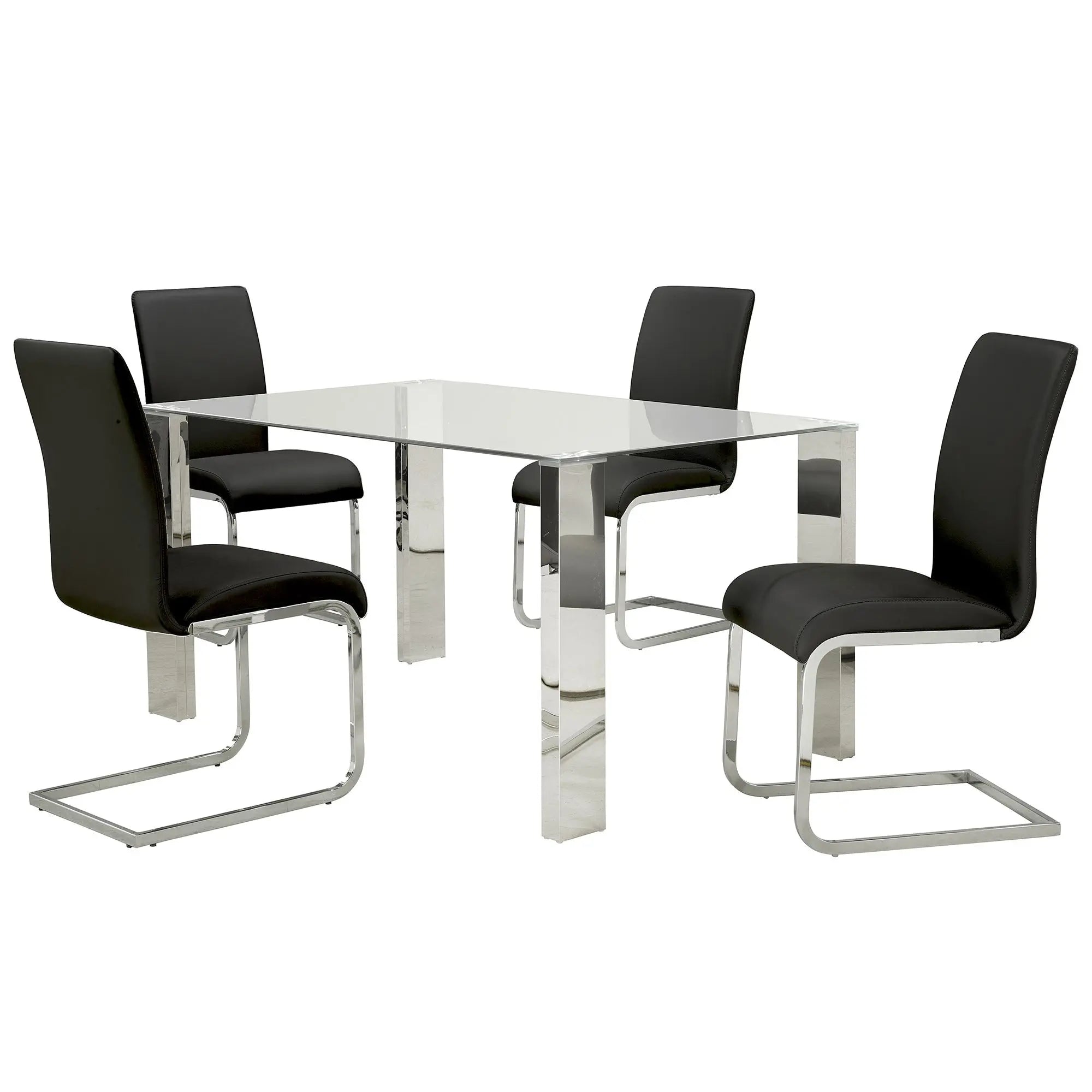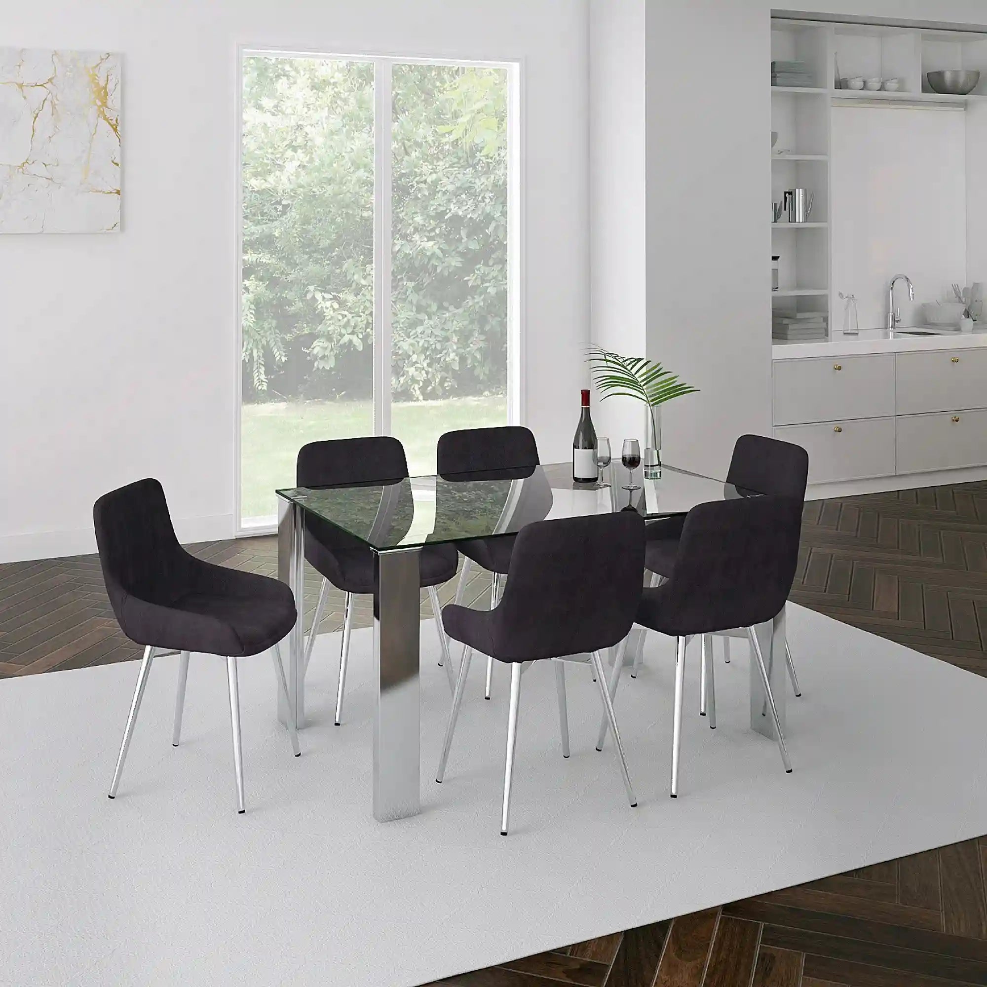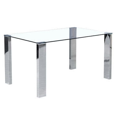Elevate an on-trend dining room with the Frankfurt stainless steel dining table, a piece that combines minimalist simplicity with everyday sophistication. Perfect for open floor plans and small spaces alike, this glass and steel dining table brings the aesthetic, feel, and utility to any space.This stainless steel dining table is supported by thick, brushed stainless steel-wrapped legs and finished on all sides for high style , even in the centre of the room. Great for smaller dining areas or in an apartment/loft, this table seats 4 to 6 people in perfect harmony.
