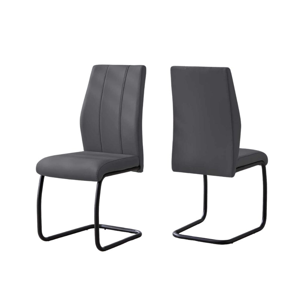 Grey Leather Look Dining Chair – Cushioned Seat - U-Shaped Legs - 2pcs