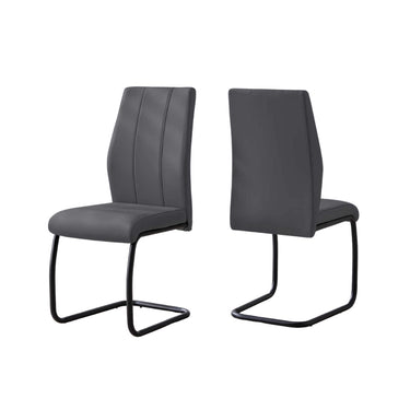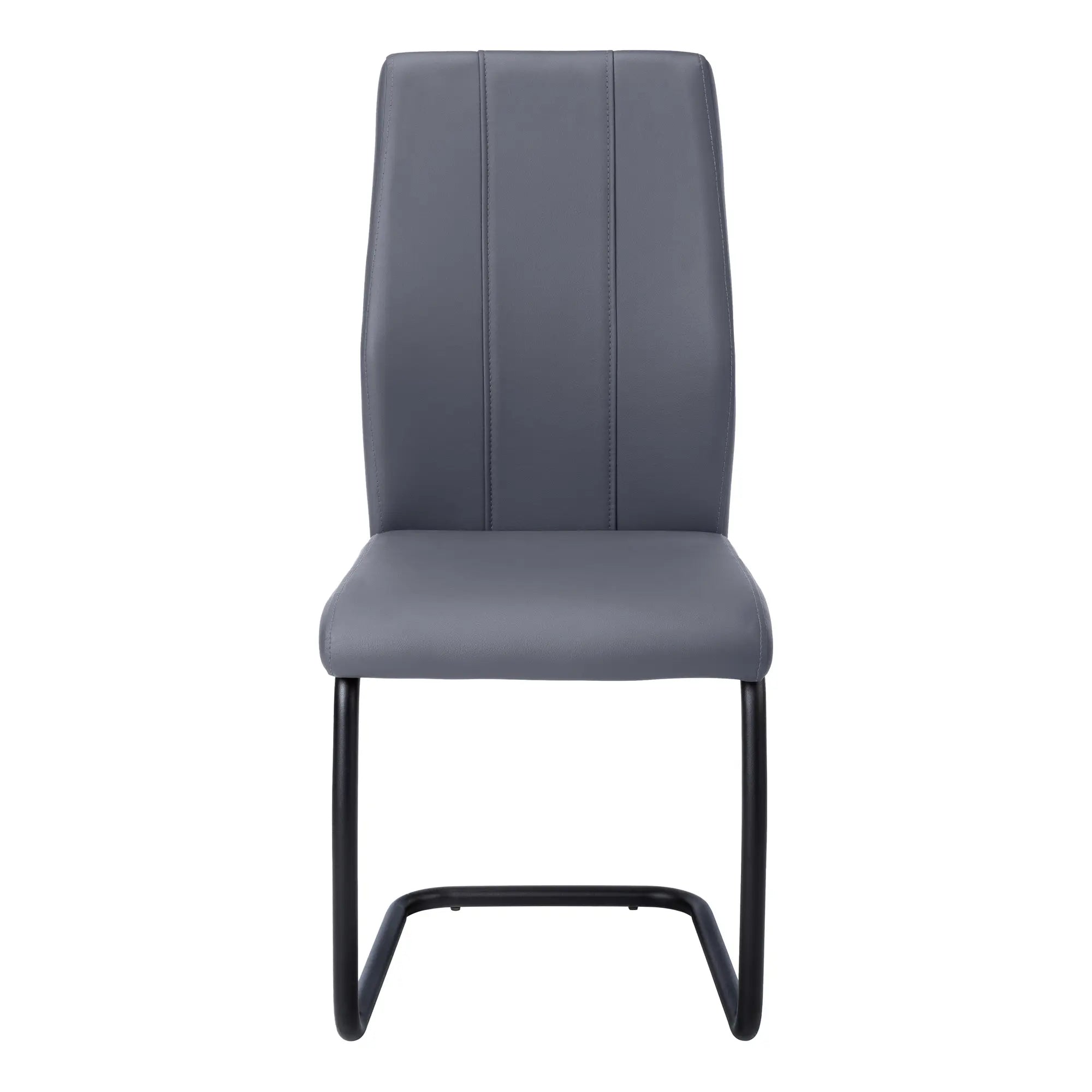 Home Grey Leather Look Dining Chair – Cushioned Seat - U-Shaped Legs - 2pcs
