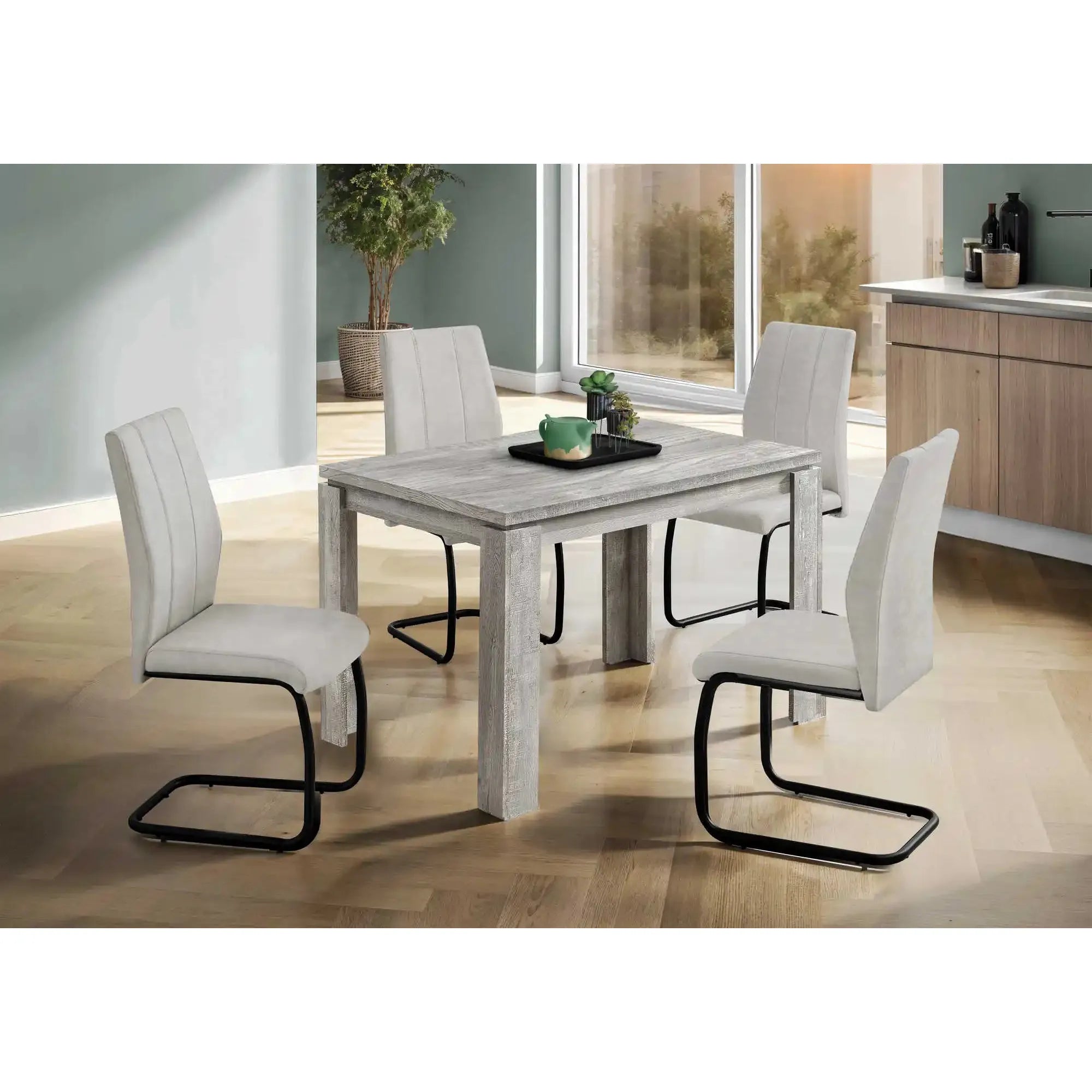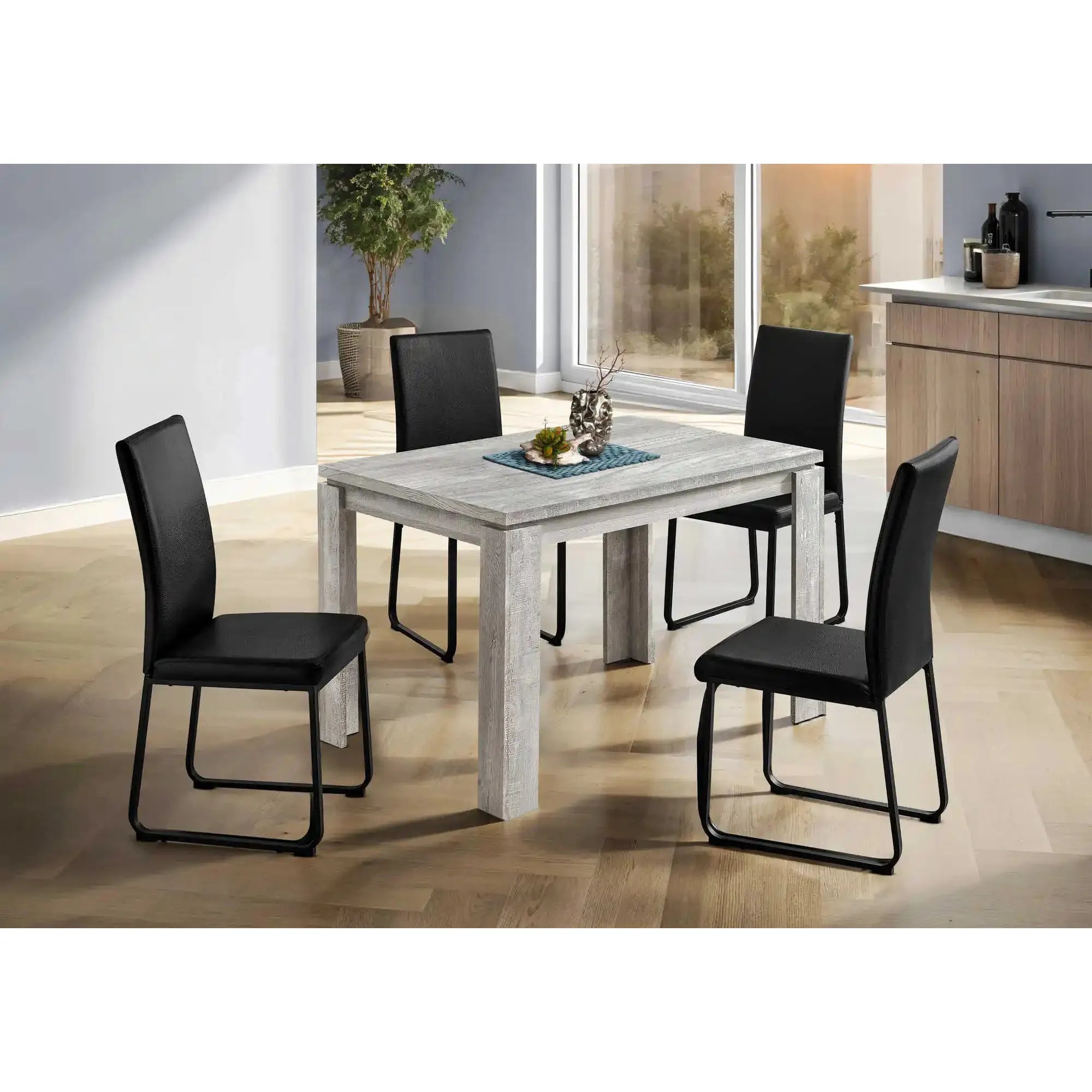 • Contemporary dining table with a grey reclaimed wood-look finish