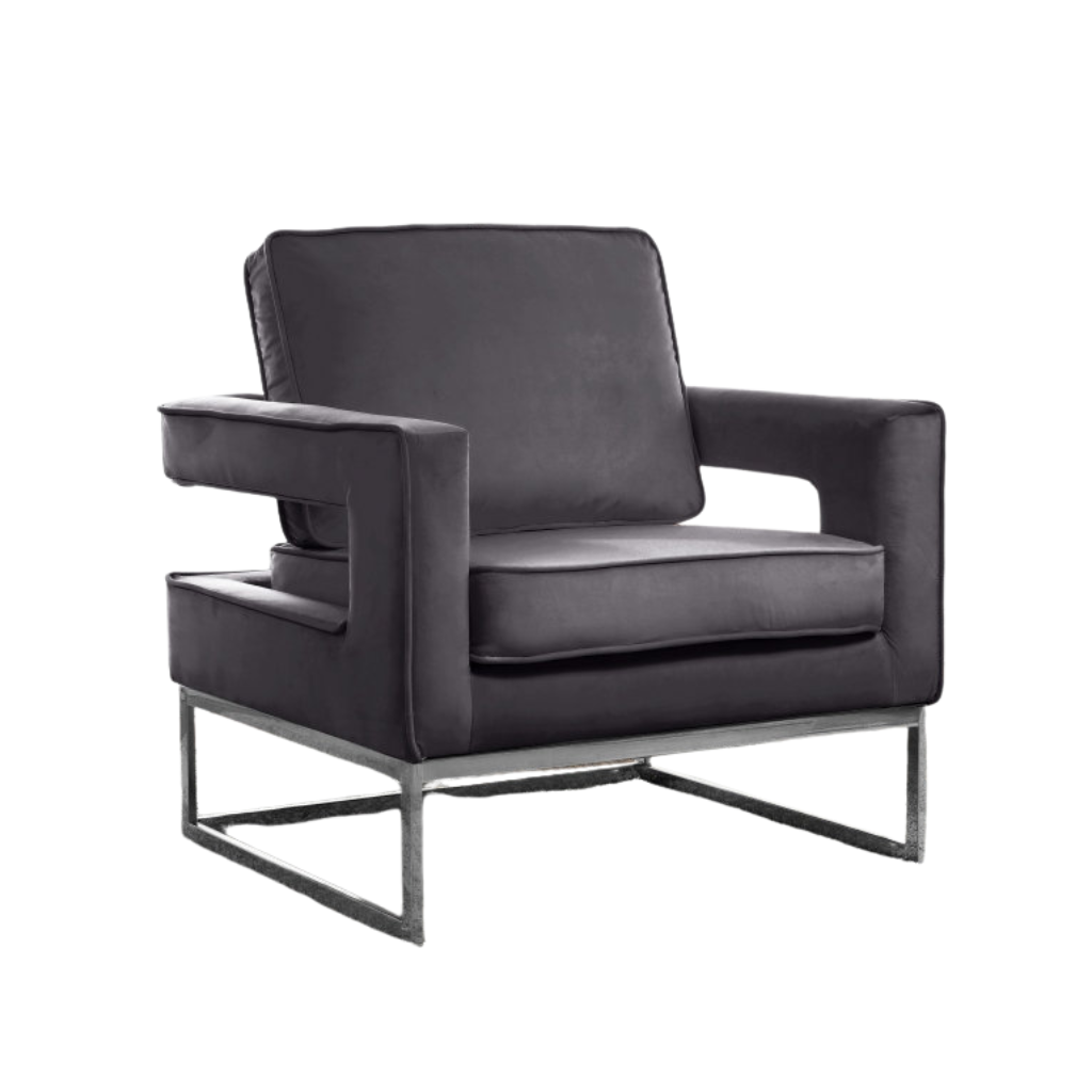 Grey Velvet Accent Chair with Chrome Legs – Chic & Comfortable