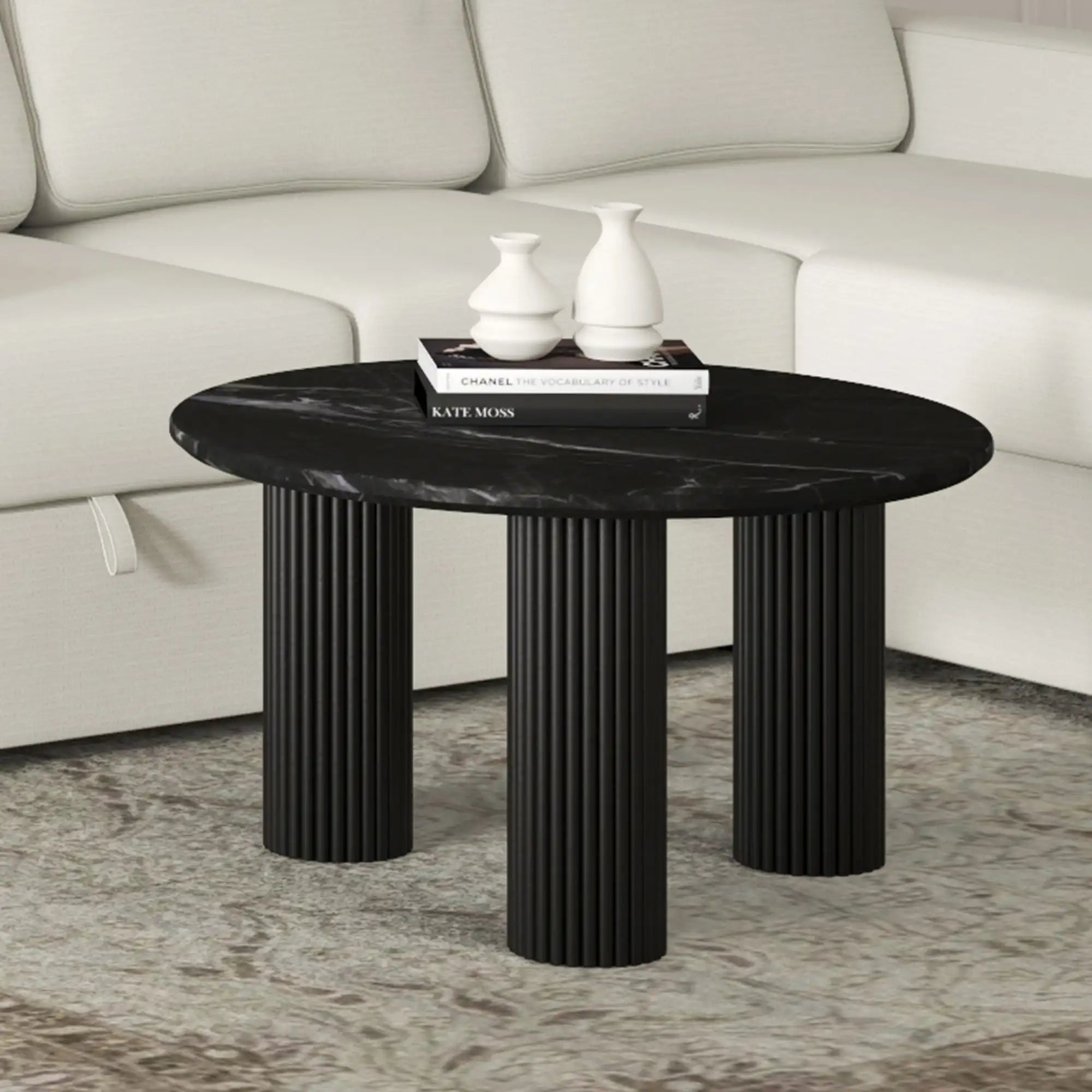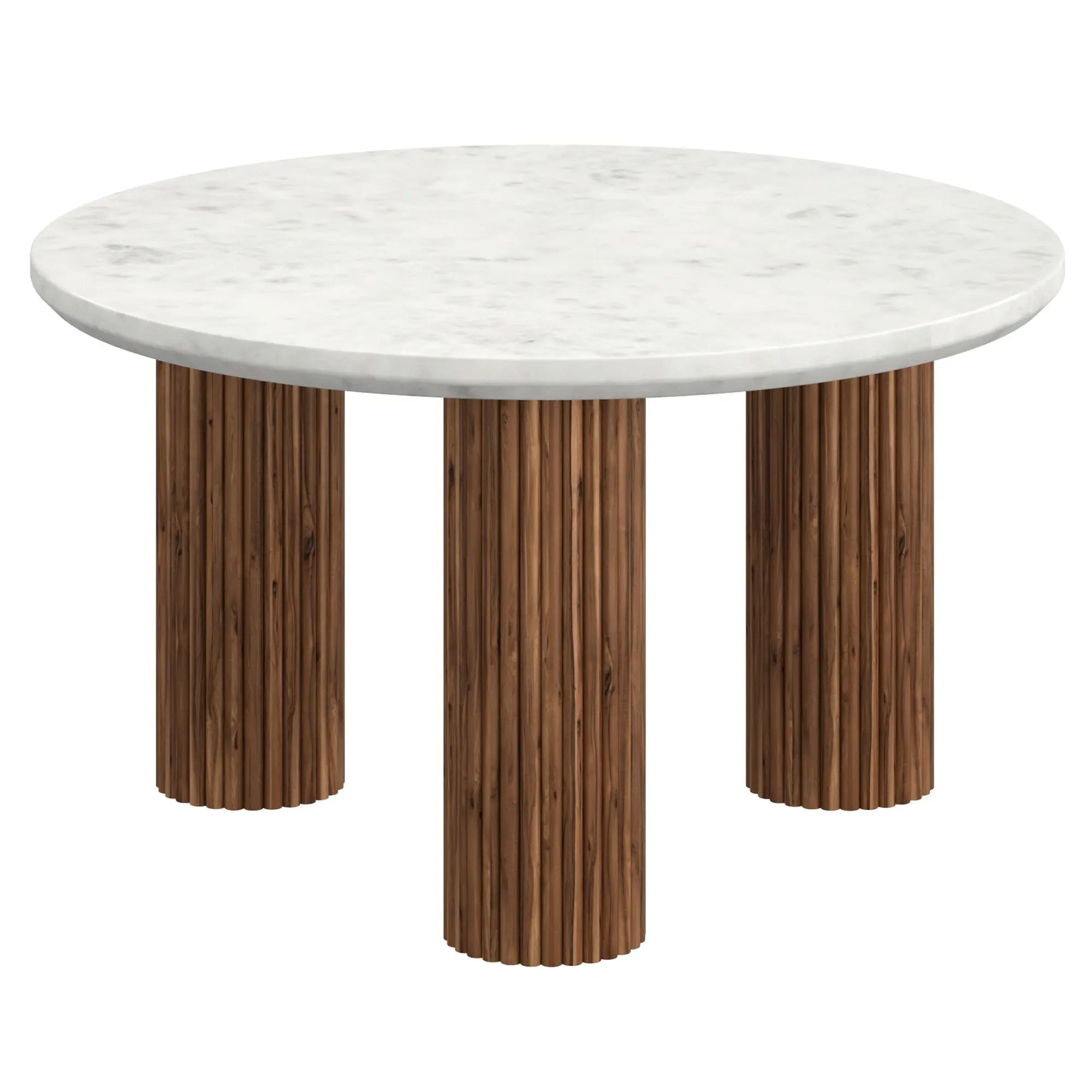 Decorate your living space with classic style and contemporary comfort. The Jilsa Marble Coffee Table is finished in gold and is the ideal design statement piece for decadent design enthusiasts. Featuring a thick, bevelled genuine marble top, the round table heartily sits on top of a solid mango wood base, reeded in triplicate, that exudes mid-century modern flair.