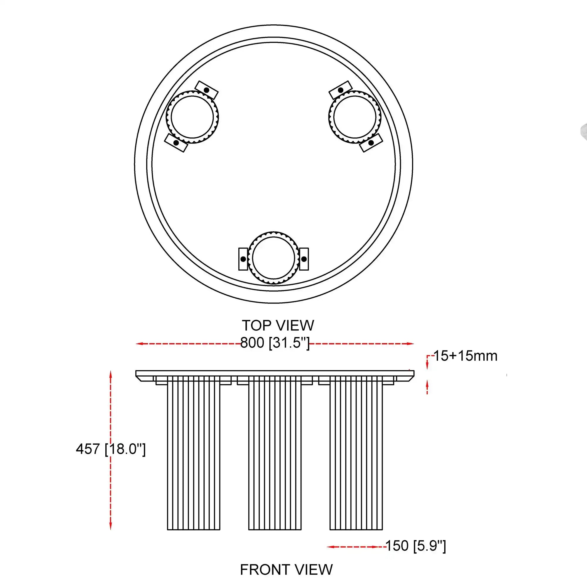 - Solid mango wood base with three stately pedestals and a refined reeded texture