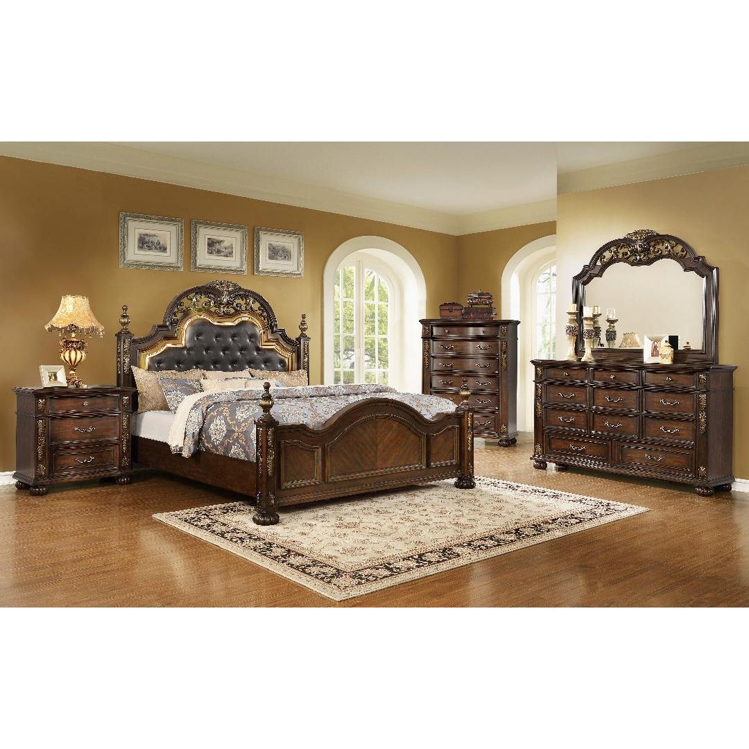 This Solid Wood 8 PC Bedroom Set Offers Sleek Victorian Design and a Tufted Leather Headboard.