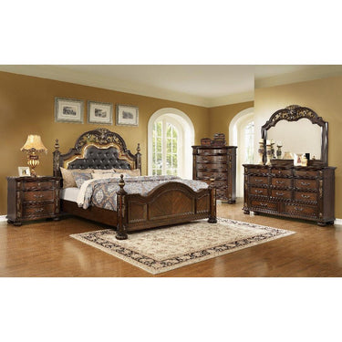 Home Kelly Anne 8-Piece Bedroom Set with Tufted Leather Headboard and Sleek Victorian Finish