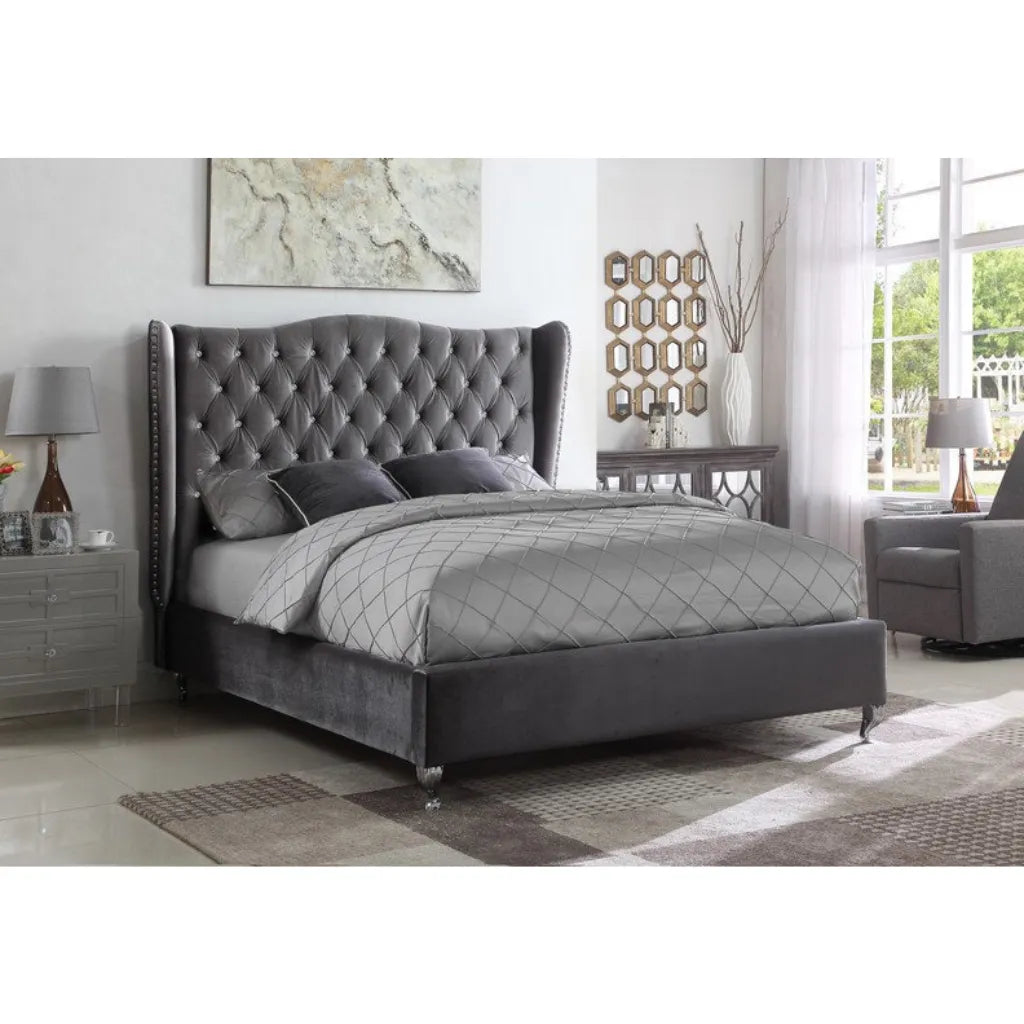 Home King Bed with Wingback Headboard & Rhinestone Details