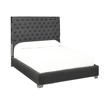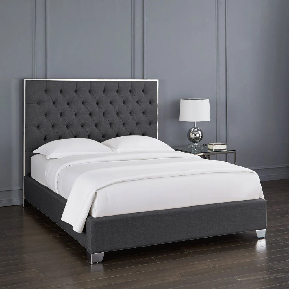 Kroma Grey Tufted King Bed Frame with Polished Steel Trim