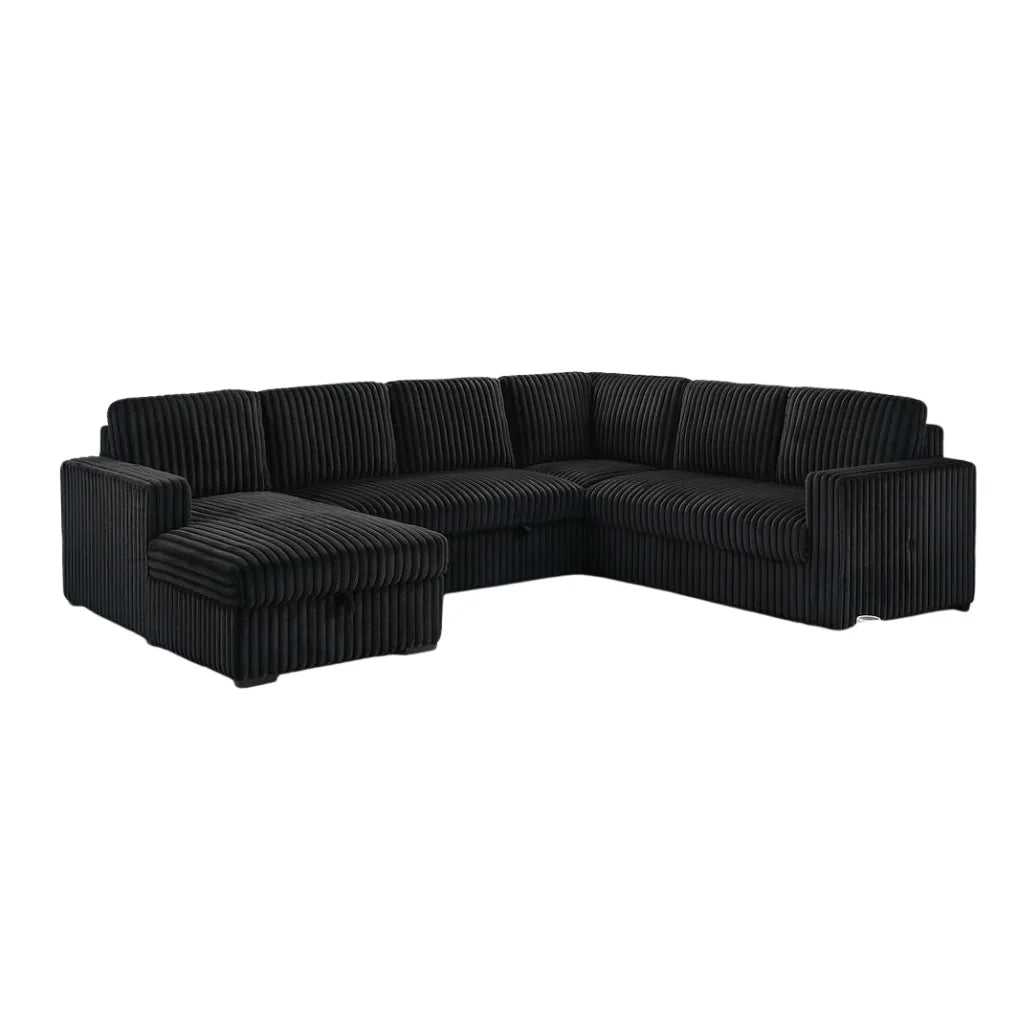 Home LHF Sectional Sofa Bed with Storage, USB Ports & Plush Black Corduroy